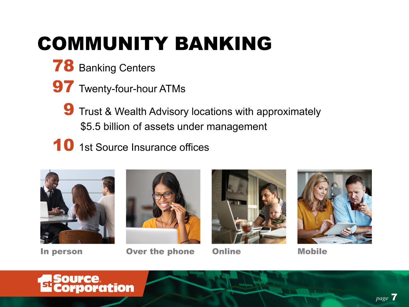 社区银行业务78个银行中心97台24小时自动取款机9个信托与财富咨询地点,管理着约55亿美元的资产10个第一源银行保险办公室7页亲自在线通过电话移动