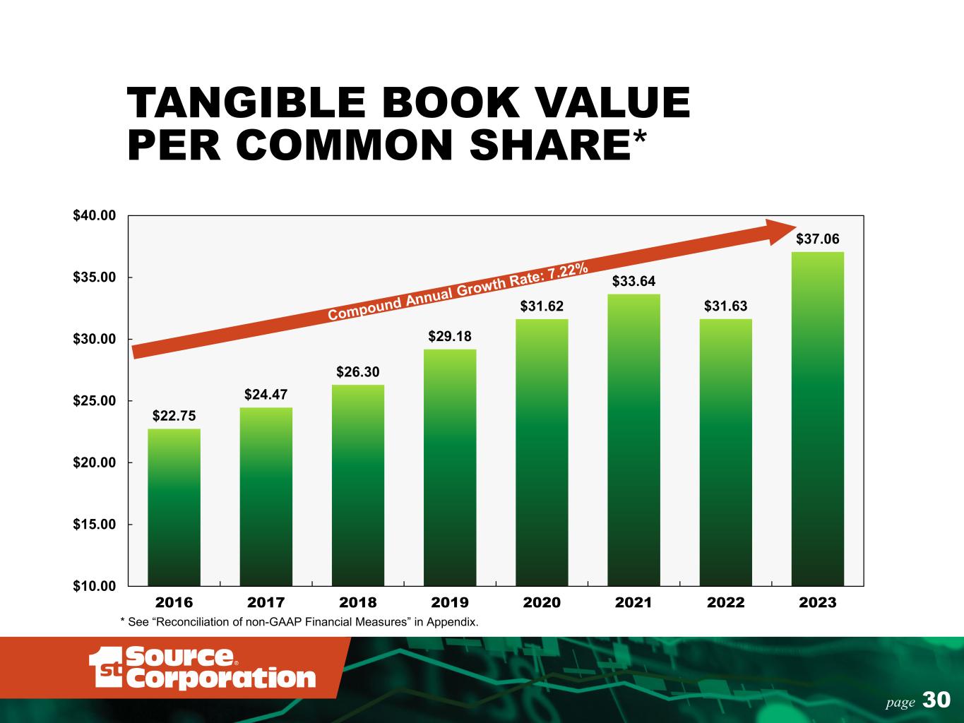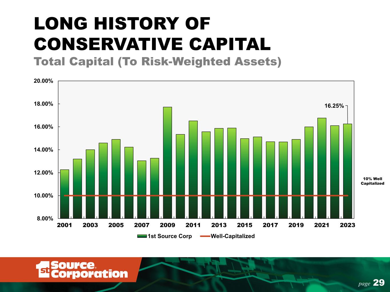29page16.25 % 8.00% 10.5% 12.00% 14.00% 16.00% 18.00% 20.00% 200120032005200720092011201320152017201920212023 第一源银行 Corp资本充足的长期历史保守资本总资本(按风险加权资产)10%资本充足