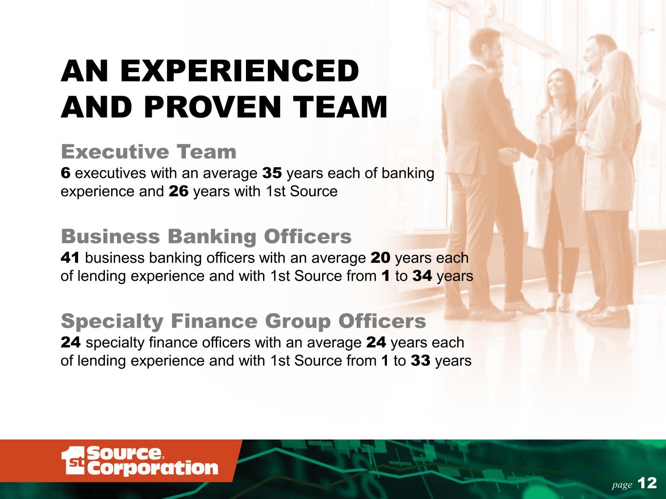 经验丰富且经过验证的团队执行团队6名高管,平均每人拥有35年银行从业经验和26年的第一源银行第一来源第一源银行型业务银行业务人员41名业务银行业务人员,平均每人拥有20年的贷款从业经验和1至34年的TERM1型业务银行业务人员24名专业财务人员,平均每人拥有24年的贷款从业经验和1至33年的TERM1型业务银行业务人员12页