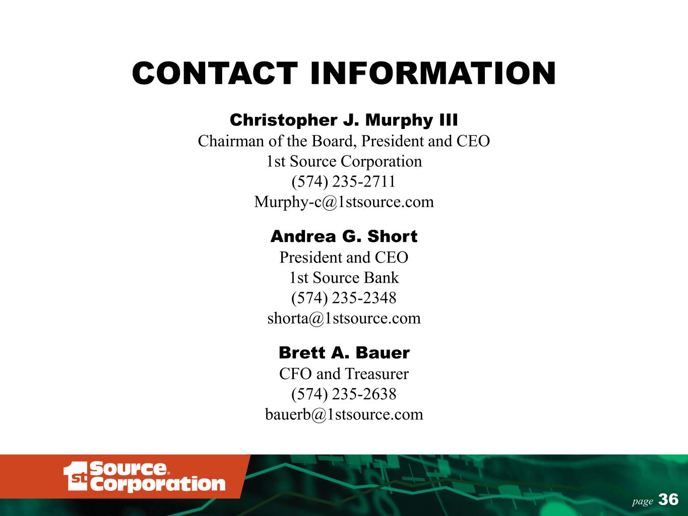 联系信息Christopher J. Murphy III董事会主席、总裁兼首席执行官1st Source Corporation(574)235-2711 murphy-c@1stsource.com 第一源银行银行(574)235-2348 shorta@1stsource.com Brett A. Bauer首席财务官兼财务主管(574)235-2638 bauerb@1stsource.com 36page
