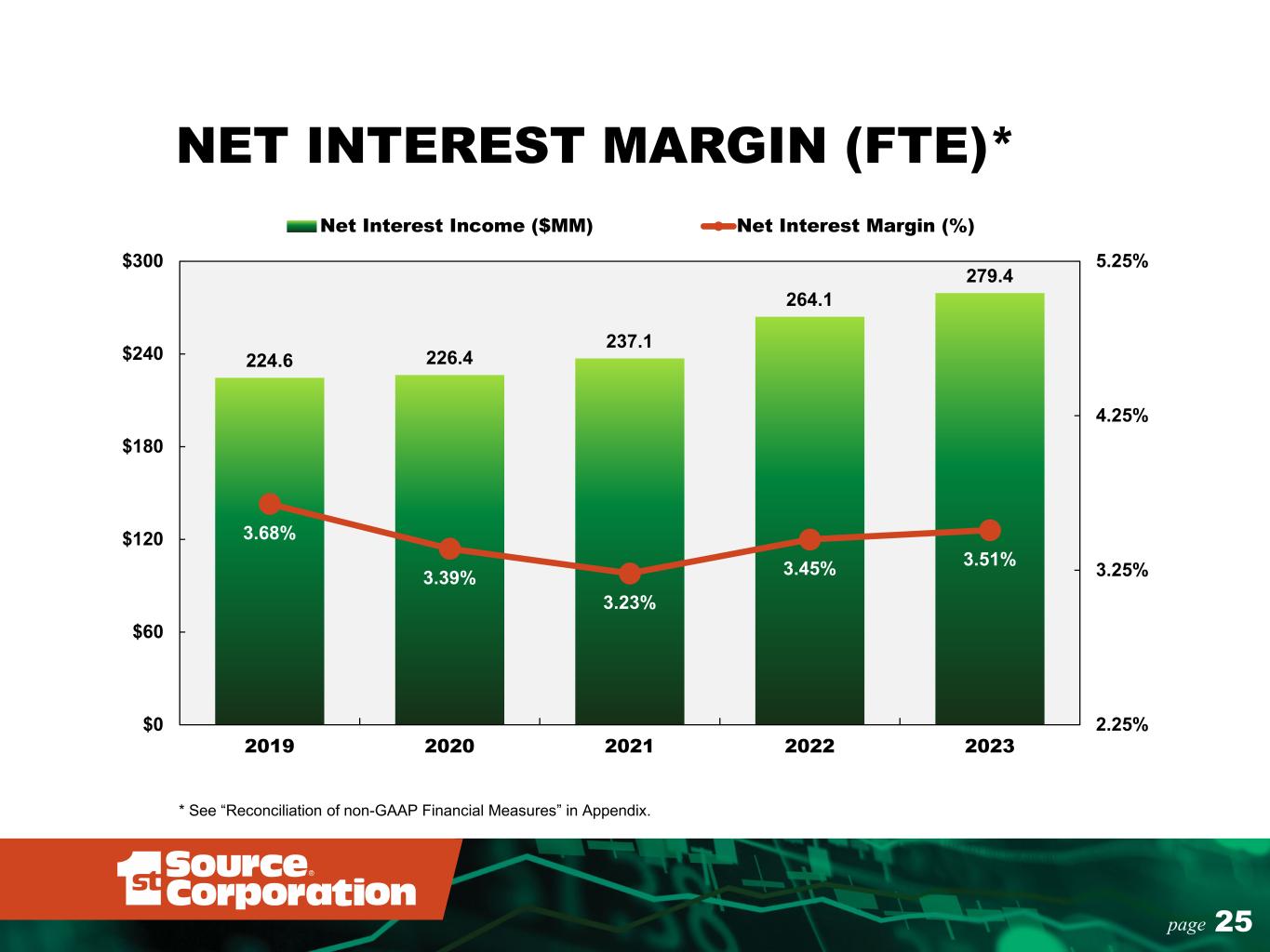 披露前瞻性陈述除历史信息外,讨论的事项可能包括“前瞻性陈述”。这些声明受到重大风险和不确定性的影响。第一源银行提醒读者,不要过分依赖任何前瞻性陈述,这些陈述仅代表所作日期。受众请注意,各种重要因素可能导致第一源银行未来期间的实际结果或情况与此类前瞻性陈述中的预期或预测存在重大差异。请参阅我们的新闻稿、10-Q表格和10-K表格,这些因素可能导致实际结果与我们不承担公开更新或修改义务的任何前瞻性陈述存在重大差异。非GAAP财务指标第一源银行的会计和报告政策符合美国公认会计原则(“GAAP”)和银行业的通行做法。然而,管理层使用某些非公认会计准则业绩衡量标准来评估和衡量公司的业绩。尽管投资者经常使用这些非GAAP财务指标来评估一家金融机构,但它们作为分析工具具有局限性,不应孤立地考虑,或作为根据GAAP报告的结果分析的替代品。其中包括应税等值净利息收入(包括其个别组成部分)、净息差(包括其个别组成部分)、效率比率、有形普通股权益与有形资产比率、税前拨备前收入和每股普通股有形账面价值。管理层认为,这些措施为公司财务信息的使用者提供了一个更有意义的视角,以了解生息资产和计息负债的表现以及公司的经营效率。其他金融控股公司可能会对这些衡量标准进行不同的定义或计算。有关公司使用的某些非GAAP财务指标与其最密切相关的GAAP指标的对账,请参阅标题为“非GAAP财务指标的对账”的幻灯片。2页