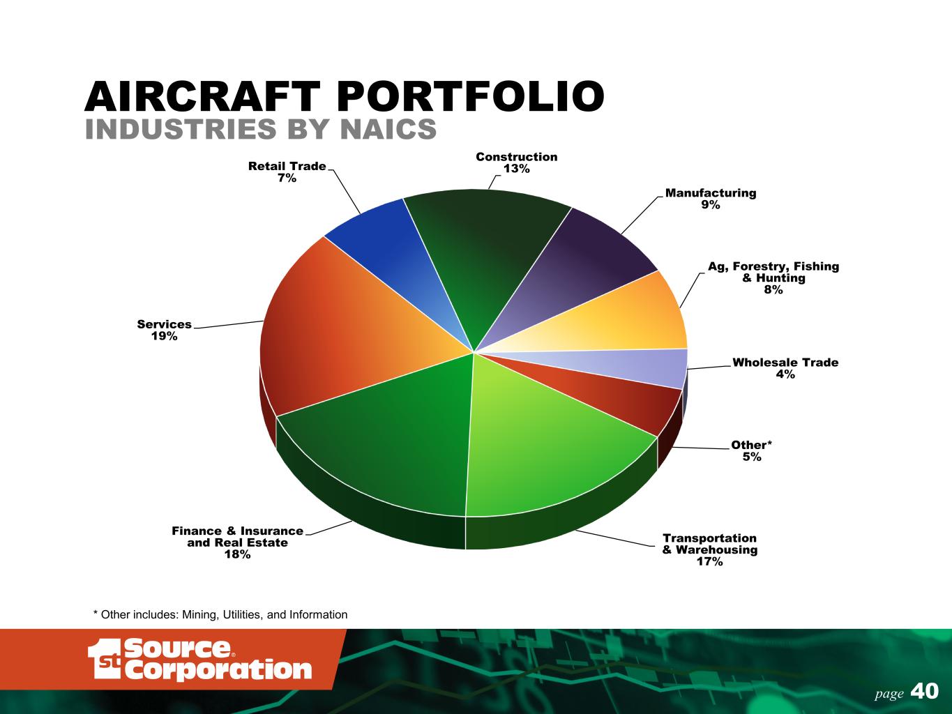40页运输仓储17%金融保险和房地产18%服务19%零售贸易7%建筑13%制造业9%农业、林业、渔猎8%批发贸易4%其他* 5% *其他包括:矿业、公用事业和信息飞机投资组合行业按NAICS