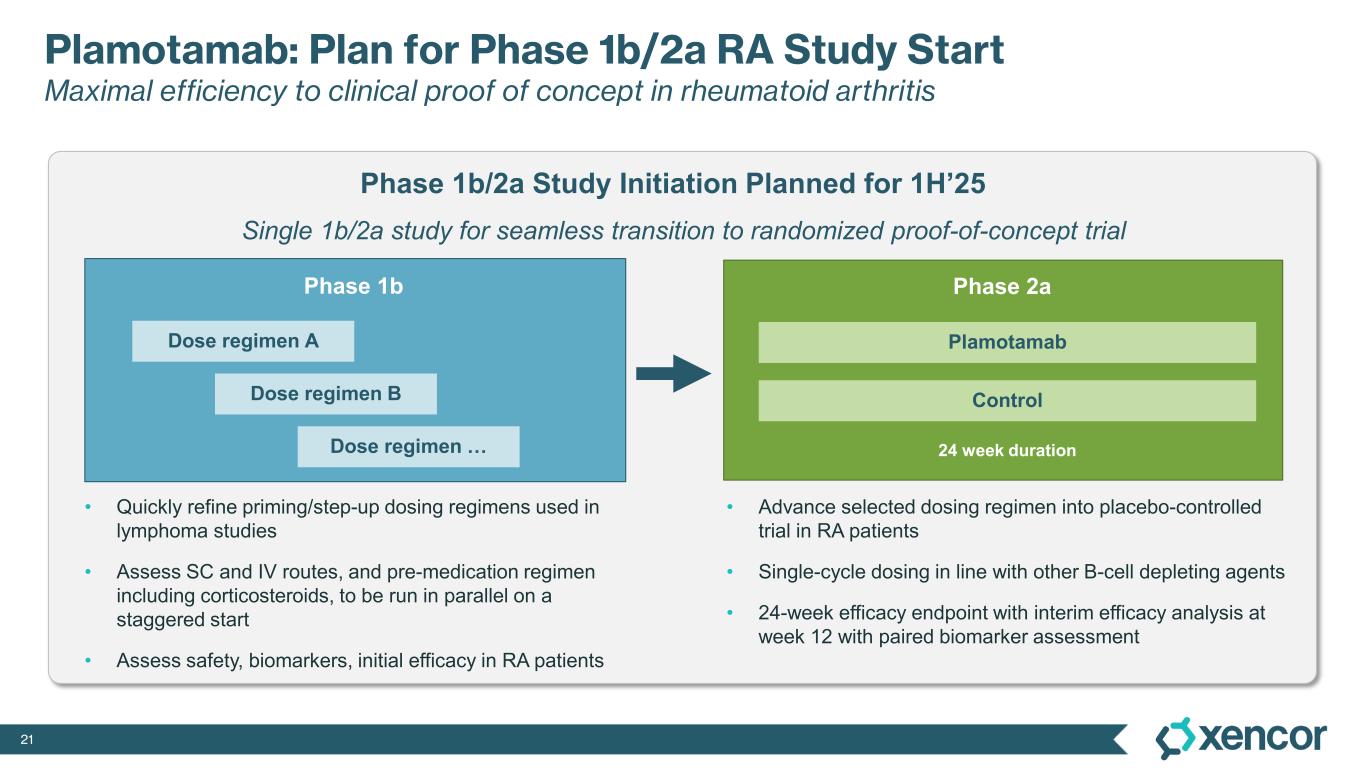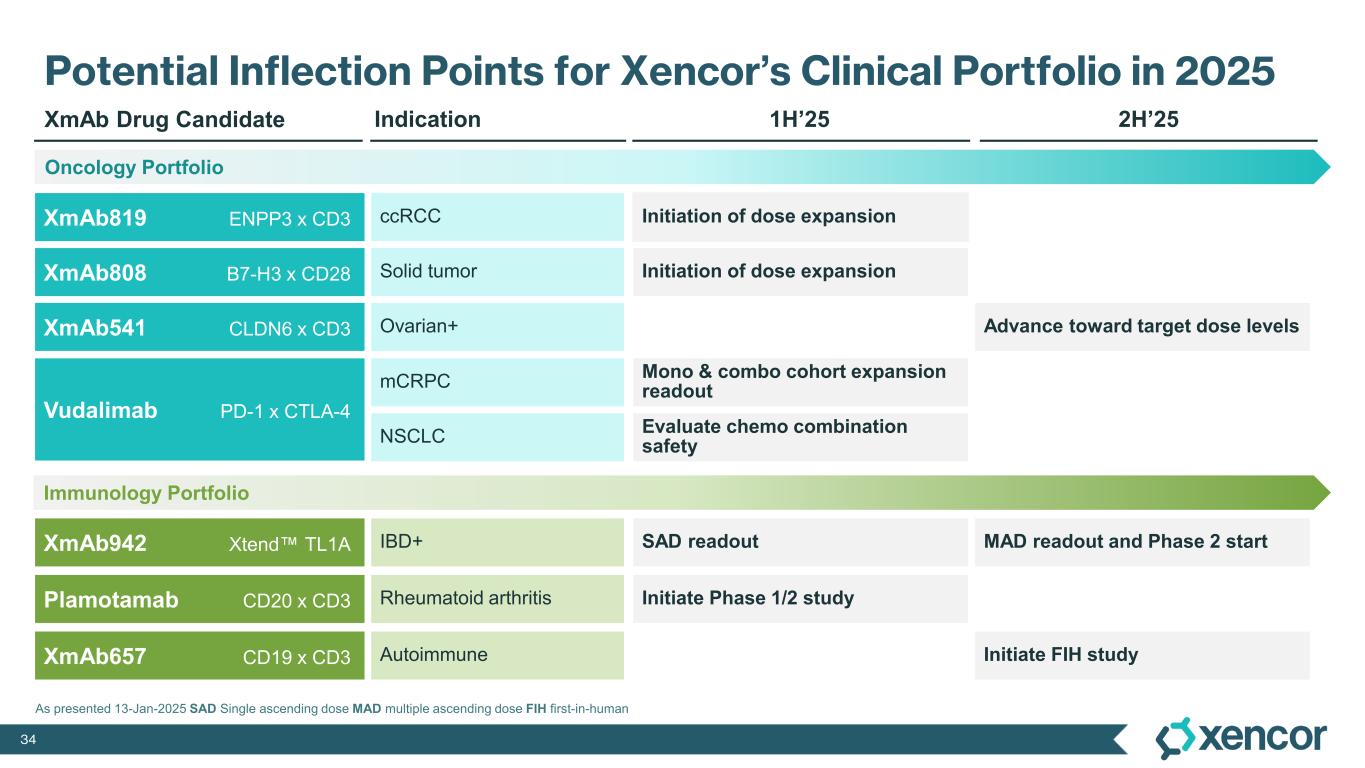 4位世界领先的蛋白质工程师和经过验证的XMAB®FC平台,由约7.07亿美元的强劲财务状况提供支持*经验丰富的药物开发团队提供快速概念验证临床研究快速原型和优化XMAB®候选药物,旨在解决复杂的生物工程问题而设计,通过严格的数据评估和竞争推动内部向商业化或合作推进,从而为患者带来长期潜在利益,Xencor的纪律严明的药物开发战略验证了一流的XMAB®平台优化设计的新型候选药物为所有利益攸关方实现结果最大化专注于临床执行XMAB®药物开发模式*未经审计。截至2024年12月31日。包括现金、现金等价物和可销售债务。2025年1月13日更新。