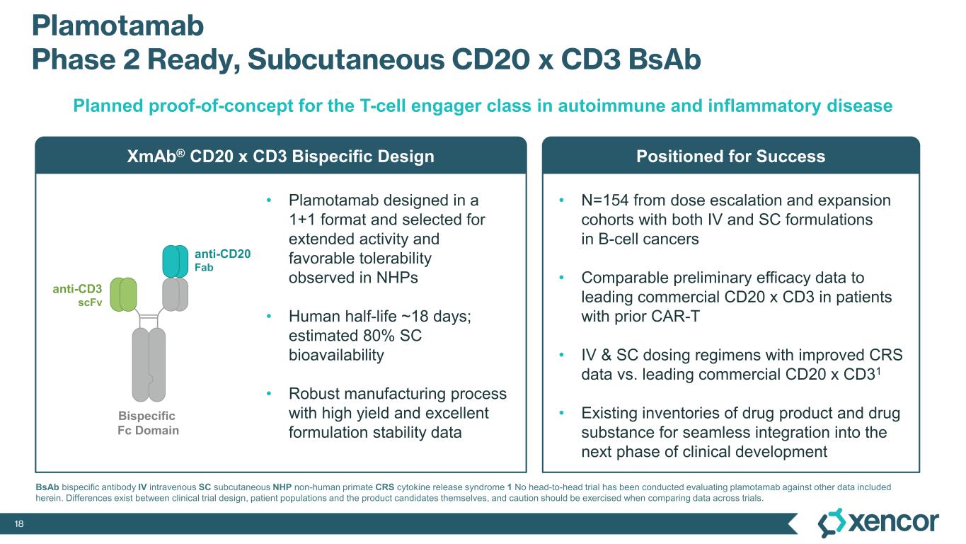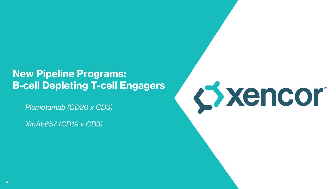 14®新管线方案:B细胞耗竭T细胞接合剂Plamotamab(CD20 x CD3)XMAB657(CD19 x CD3)