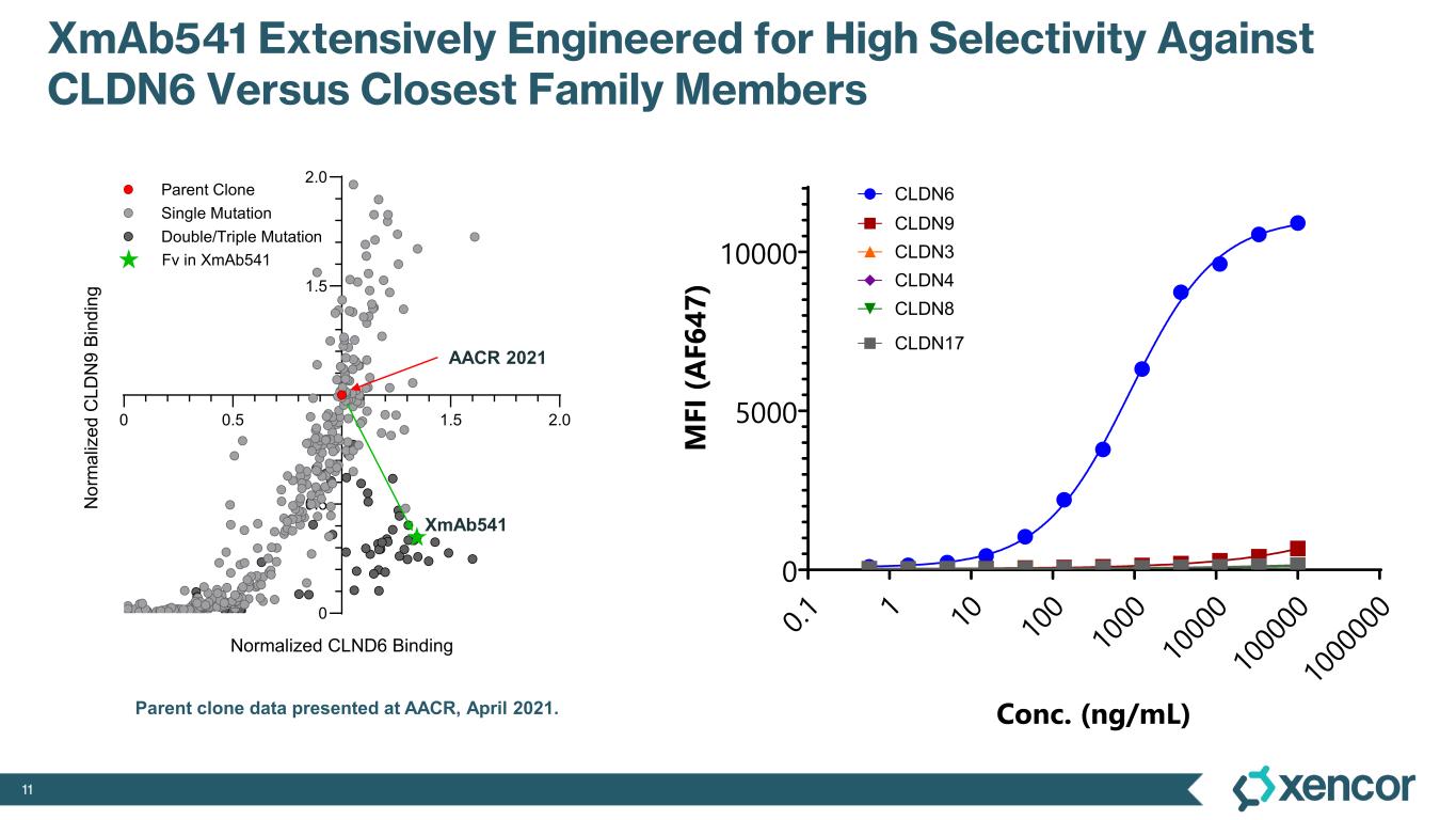 11 XMAB541广泛设计,针对CLDN6而不是最亲密的家庭成员具有高选择性0.11 101001000100010001000010000001000000500010000 conc。(ng/ml)M FI(A F6 47)CLDN17 CLDN8 CLDN4 CLDN3 CLDN9 CLDN6 0.5 1.5 2.0 0.5 1.5 2.0 2.0归一化CLND6结合N或m al iz ed C LD N 9 bi nd in g single mutation double/triple mutation parent clone 00 FV in XMAB541 AACR 2021 XMAB541 parent clone data presented at AACR,April 2021。