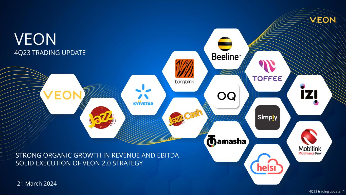 1 Q4 23交易更新| 1 VEON Q4 23交易更新2024年3月21日收入和EBITDA强劲的有机增长稳健执行VEON 2.0战略