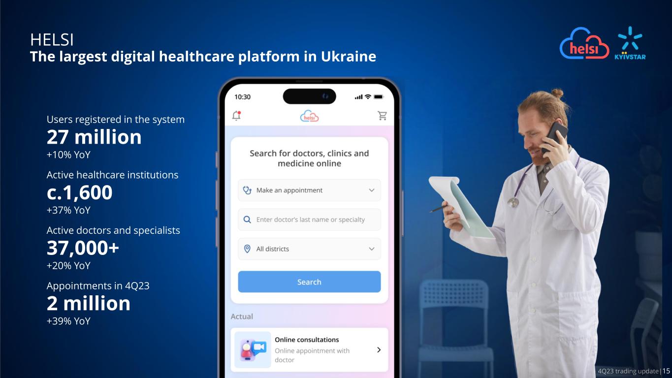 15 4Q23交易更新| 15 HELSI乌克兰最大数字医疗平台系统内注册用户2700万+ 10% YoY活跃医疗机构c.1,600 + 37% YoY活跃医生和专科医生37,000 + + 20% YoY预约4Q23 200万+ 39% YoY