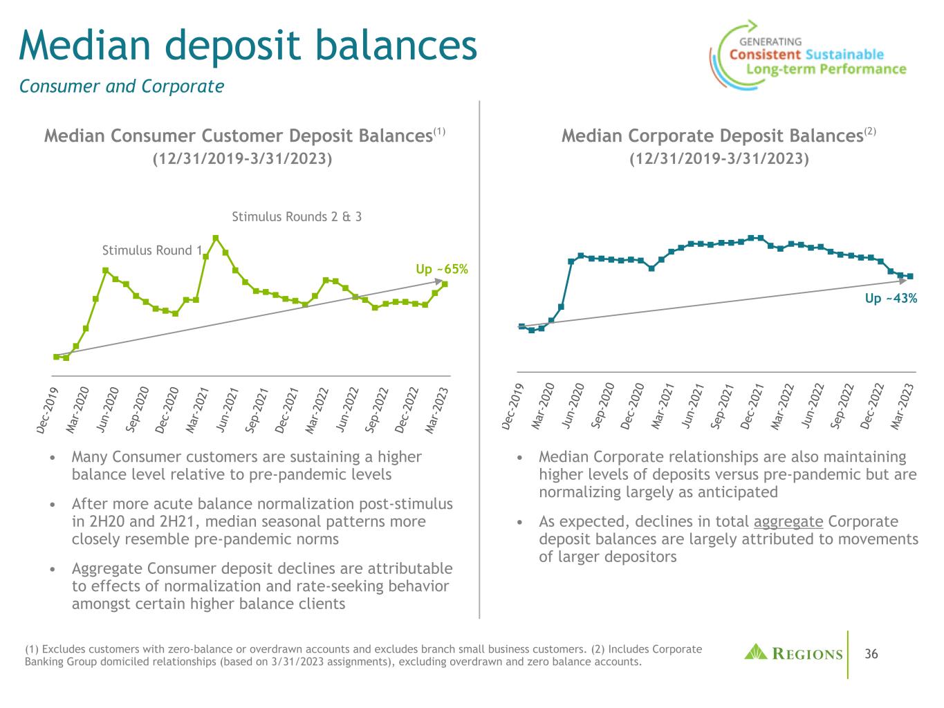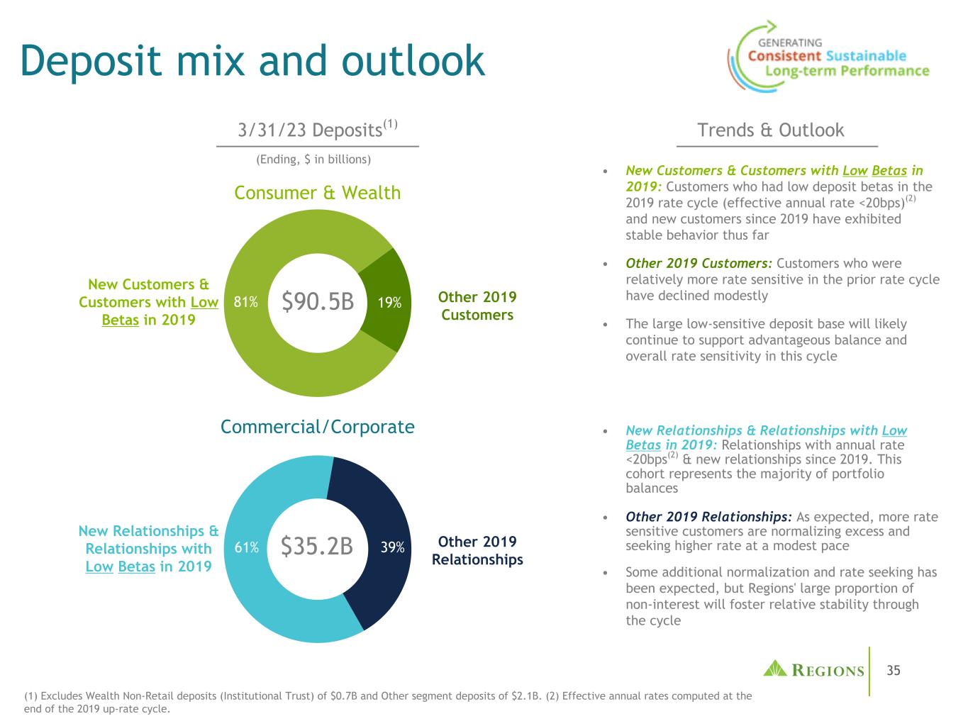 35存款组合和前景趋势与展望消费与财富• 2019年新客户和低贝塔客户:2019年利率周期中存款贝塔较低的客户(有效年利率< 20bps)(2)和2019年以来的新客户迄今表现稳定• 2019年其他客户:在上一个利率周期中对利率相对更敏感的客户略有下降•较大的低敏感存款基础可能会继续支持有利的平衡与本轮周期中的整体利率敏感性•新关系&与2019年低贝塔系数的关系:与年率< 20bps(2)的关系&自2019年以来的新关系。这一组代表了大多数投资组合余额• 2019年其他关系:正如预期的那样,对利率更为敏感的客户正将超额利率正常化,并以适度的速度寻求更高的利率•预期会有一些额外的正常化和利率寻求,但各地区较大比例的非利息将促进整个周期的相对稳定3/31/23存款(1)(期末,以十亿美元计)(1)不包括0.7B美元的财富非零售存款(机构信托)和2.1B美元的其他部分存款。(2)在2019年利率上升周期结束时计算的实际年利率。39% 61% 81% 19% $ 35.2B $ 90.5B Other 2019 Relationships New Relationships & Relationships with Low Beta in 2019 Commercial/Corporate Other 2019 Customers New Customers & Customers with Low Beta in 2019