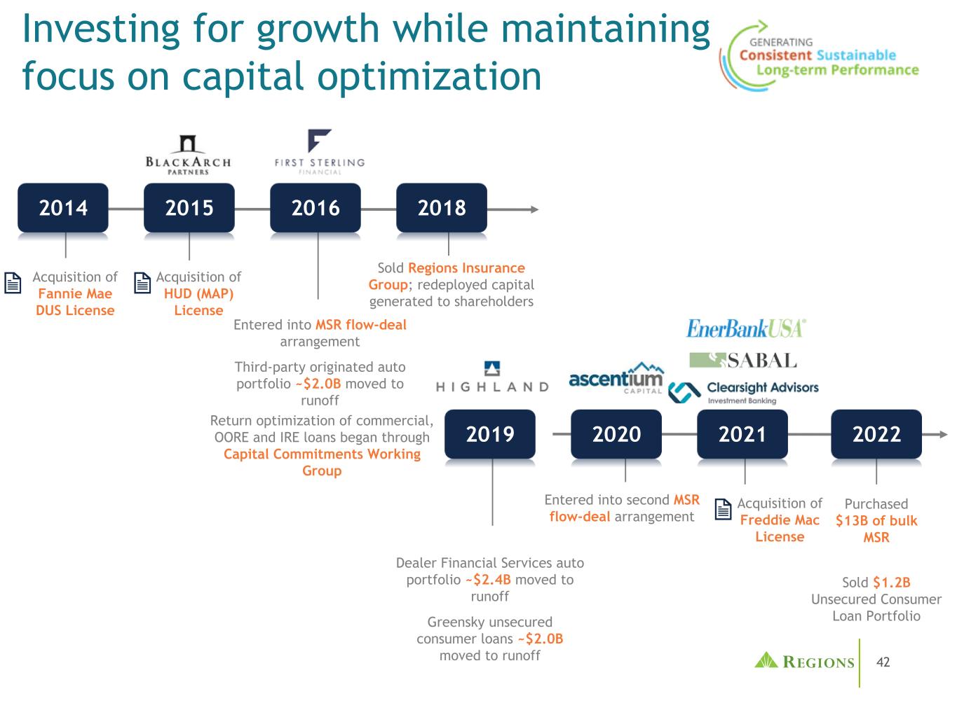 42投资增长,同时保持对资本优化的关注收购HUD(MAP)License 2014201520162019202020182021收购Fannie Mae DUS License第三方发起的汽车投资组合~$ 2.0B转入径流进入MSR流动交易安排Sold Regions Insurance Group;将产生的资本重新分配给股东Greensky无担保消费者贷款~$ 2.0B转入径流Dealer Financial Services汽车投资组合~$ 2.4B转入径流进入第二个MSR流动交易安排商业回报优化,OORE和IRE贷款通过Capital Commitments Working Group Acquisition of Freddie Mac License 2022 Purchased $ 13B of bulk MSR Sold $ 1.2B Unsecured Consumer Loan Portfolio