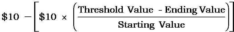 由于音符的阈值值等于起始值,因此如果结束值低于起始值,那么你将损失全部或部分投资。 |