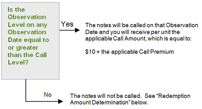 如果某个观察日期的观察级别等于或高于约定级别,那么投资者将需要支付10美元的本金,此外还需要支付相应的逾期费用。一旦债券被赎回,它们就不会再处于未偿还状态,也不会有进一步的还款义务了。