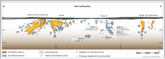 | · | 希望湾–第一季度勘探钻探总计30,600米,在马德里矿床的Patch 7区域取得了强劲成果,其中包括在Patch 7矿产资源以北约200米的一组高品位交叉点中,在461米深度的17.7米处获得20.8克/吨黄金,在480米深度的16.4米处获得14.1克/吨黄金 |