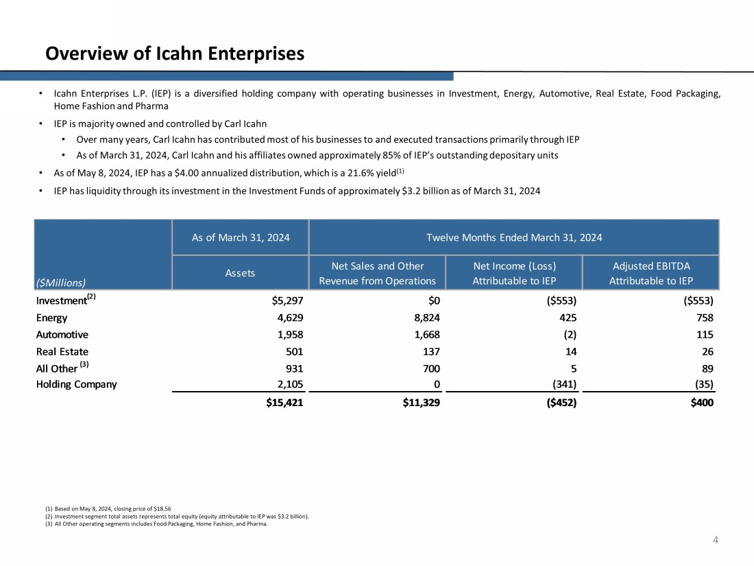 Icahn Enterprises L.P.投资者说明会,2024年5月