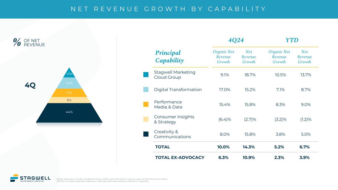 N E T R E V E N U E G R O W T H B Y C A P A B I L I T Y Notes:Advocacy includes Targeted Victory,SKDK,and TMA Direct。由于四舍五入,数字可能无法实现。EBITDA包括公司费用,名义上按比例分配给每种能力。4Q24 YTD信安能力有机净收入增长净收入增长有机净收入增长净收入增长Net Revenue Growth Net Revenue Growth Net Revenue Growth Net Revenue Growth of Net Revenue Growth of Net Revenue Growth of Net Revenue Growth of Net Revenue Growth of Net Revenue Growth of Net Revenue of Net Revenue of Net Revenue of Net Revenue of Net Revenue of Net Revenue of Net Revenue of Net Revenue of Net Revenue of Net Revenue of Net Revenue of Net Revenue of Net Revenue of Net Revenue of Net Revenue of Net Revenue of Net Revenue of Net Revenue of Net Rev