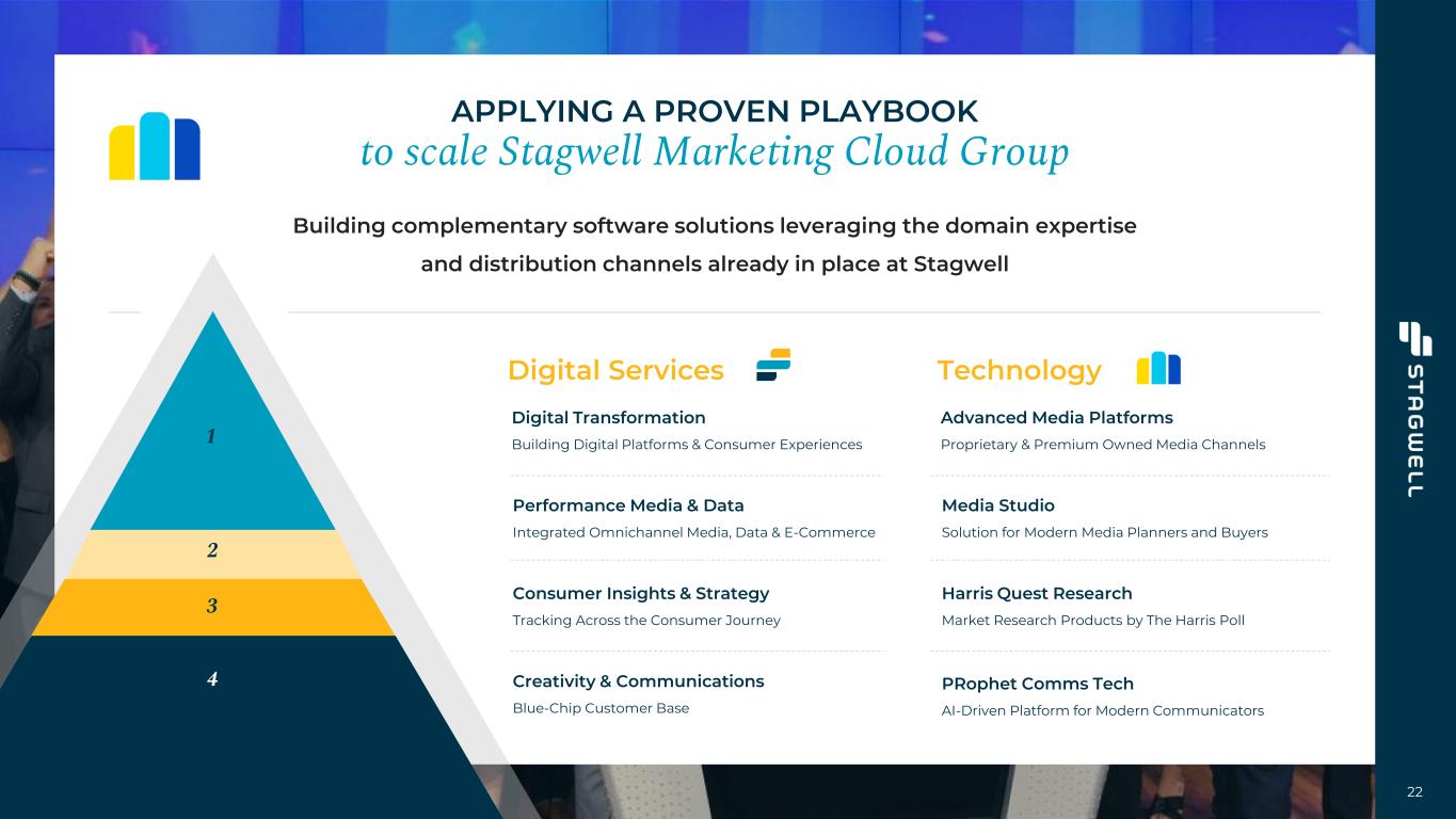 22应用经过验证的剧本来扩展Stagwell营销云集团构建互补的软件解决方案,利用在Stagwell先进媒体平台已有的领域专业知识和分发渠道为Modern Media策划者和购买者提供专有和优质自有媒体渠道媒体工作室解决方案Harris Poll PROFet Comms Tech AI驱动平台现代传播者数字服务技术数字化转型构建数字平台和消费者体验的Harris Quest Research Market Research Products Digital Transformation Building Digital Platforms & Consumer Experiences Performance Media & Data Integrated Omnichannel Media,数据&电商消费者洞察&战略追踪跨越消费征程创意&通信蓝筹客户群1234