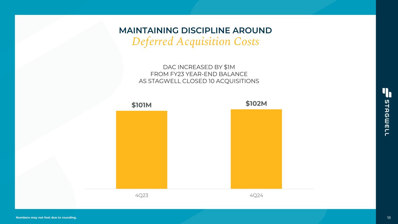 18围绕递延收购成本保持纪律由于Stagwell完成了10项收购数字,DAC较23财年年底余额增加了100万美元,可能由于四舍五入而无法实现。1.01亿美元1.02亿美元Q4 23 Q4 24