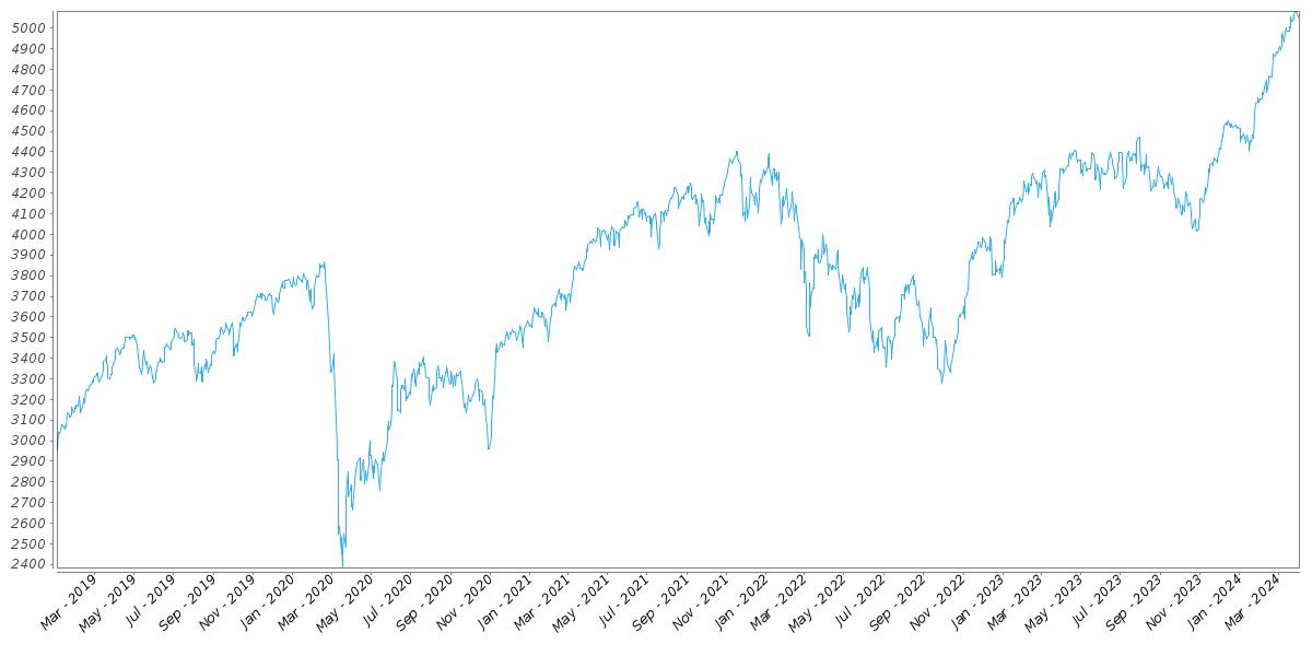 下图列出2019年1月2日至2024年4月2日期间RTY的每日历史表现。我们从Bloomberg L.P.获得了这一历史数据。我们没有独立验证从Bloomberg L.P.获得的信息的准确性或完整性。2024年4月2日,RTY的收盘水平为2,065.037。