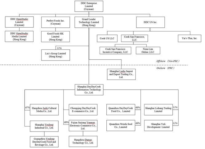 本次发行的证券为离岸控股公司DDC Enterprise Limited(“公司”),该公司直接或间接拥有运营子公司的股权。子公司在中国开展业务,控股公司不在中国开展业务。除非另有说明,如本招股说明书所用,以及在描述我们的运营和综合财务信息时,“DDC”“我们”、“我们”、“公司”或“我们的”指DDC Enterprise Limited,一家开曼群岛豁免公司。我们还会提到我们所有的子公司,“子公司”。