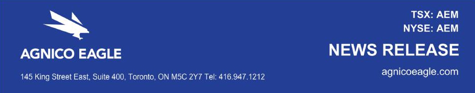 前瞻性陈述必然基于一些因素和假设,这些因素和假设虽然在此类陈述之日被Agnico Eagle认为是合理的,但本质上受到重大商业、经济和竞争不确定性和意外事件的影响。许多已知和未知的因素可能导致实际结果与此类前瞻性陈述明示或暗示的结果存在重大差异。告诫读者不要过分依赖这些前瞻性陈述,这些陈述仅在作出之日起生效。除法律要求外,Agnico Eagle不打算、也不承担任何义务更新这些前瞻性陈述。