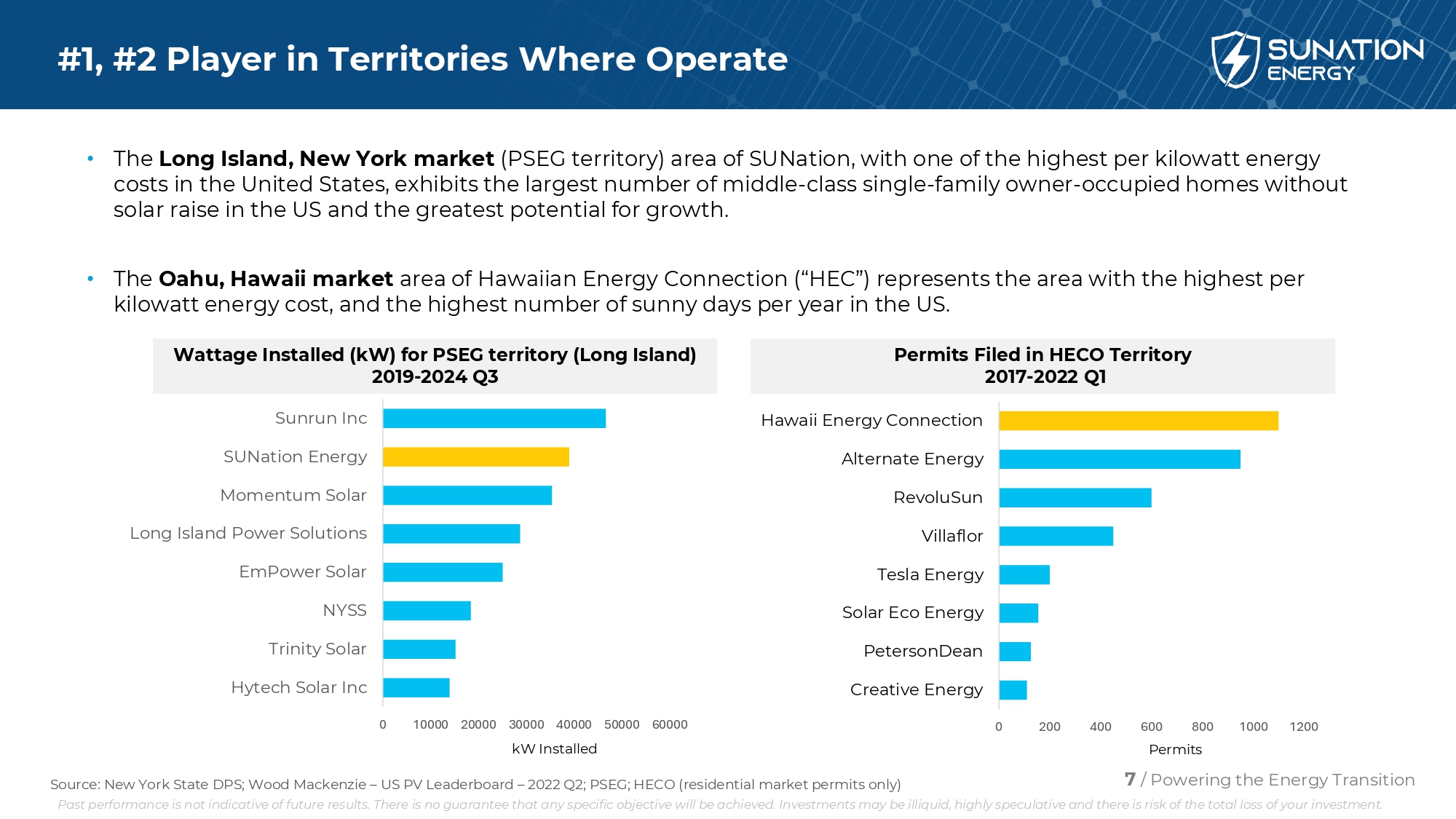 6/为能源转型提供动力以客户为中心的方法推动高满意度、客户推荐和低客户获取成本1截至2023年4月的谷歌评论(加权);包括HEC和SUNation;²代表2023年1月至3月期间已售出的推荐工作/已售出的总工作;包括HEC和SUNation;↓代表2022年1月至12月期间每售出一瓦的总销售和营销费用。包括HEC和SUNation •全面服务安装程序,全面控制客户体验•多样化的产品/融资选择满足客户需求•清晰透明的销售协议•管理工作生命周期的数字工具•专注于客户教育而不是积极接近的销售文化•服务响应的及时性和质量•积极参与当地社区,以建立值得信赖的品牌4.8 Google Online Review 138%推荐率2 $ 0.49 Customer Acq。成本31截至2024年11月的谷歌评论(加权);包括HEC和SUNation ²代表2024年1月至10月期间已售出的推荐工作/已售出的总工作包括HEC和SUNation ↓代表2024年1月至10月期间每售出瓦特的总销售和营销费用。包括纽约的SUNation Energy。过去的表现并不代表未来的结果。不能保证任何具体目标都能实现。inv est ments可能缺乏流动性,投机性很强,存在投资全损的风险。