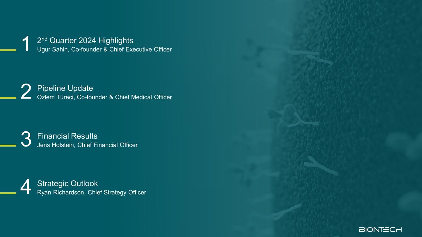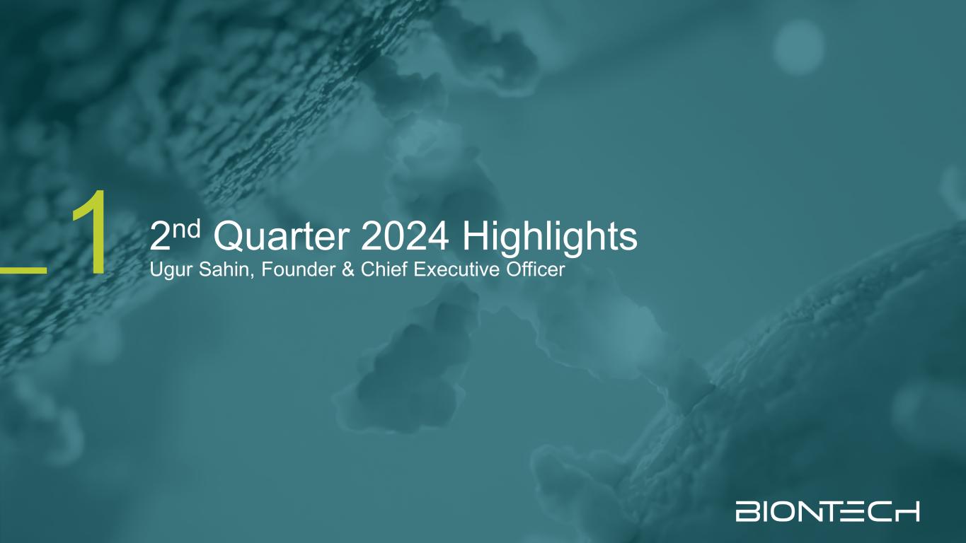 财务业绩Jens Holstein,首席财务官3战略展望Ryan Richardson,首席战略官4管道更新Ö zlem T ü reci,联合创始人兼首席医疗官2 2024年第二季度亮点丨共同创始人兼首席执行官Ugur Sahin 1