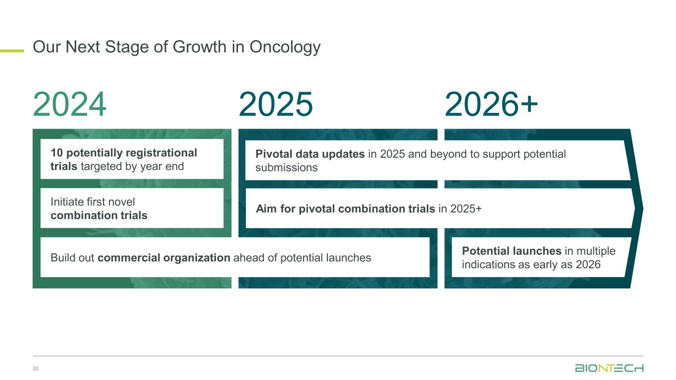 我们在肿瘤学领域的下一阶段增长30202420252026 +年底前目标的10项潜在注册试验在潜在上市之前建立商业组织最早于2026年启动首个新型联合试验多个适应症的潜在上市目标是在2025年进行关键联合试验+ 2025年及以后的关键数据更新,以支持潜在提交