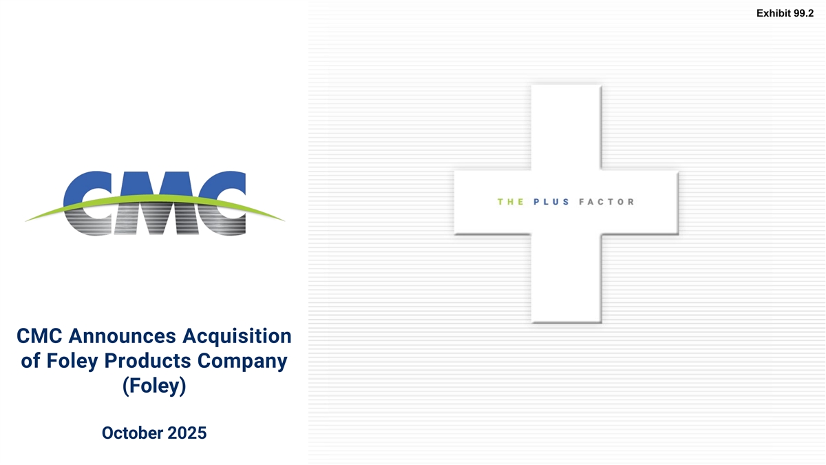 附件 99.2 CMC宣布收购Foley Products Company(Foley)2025年10月