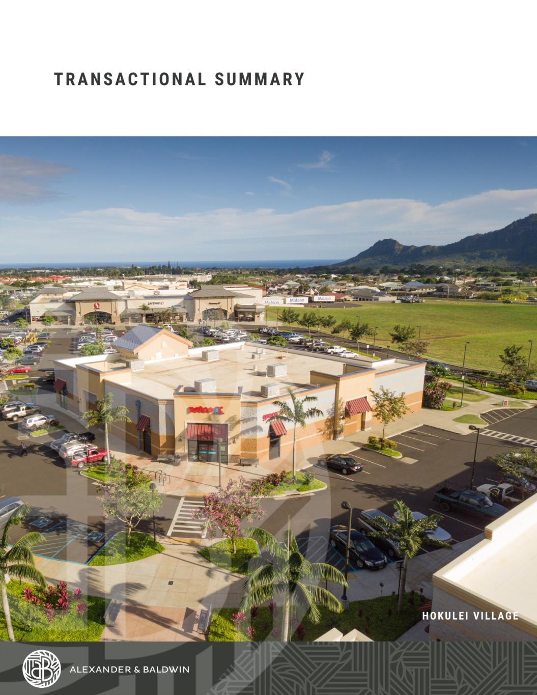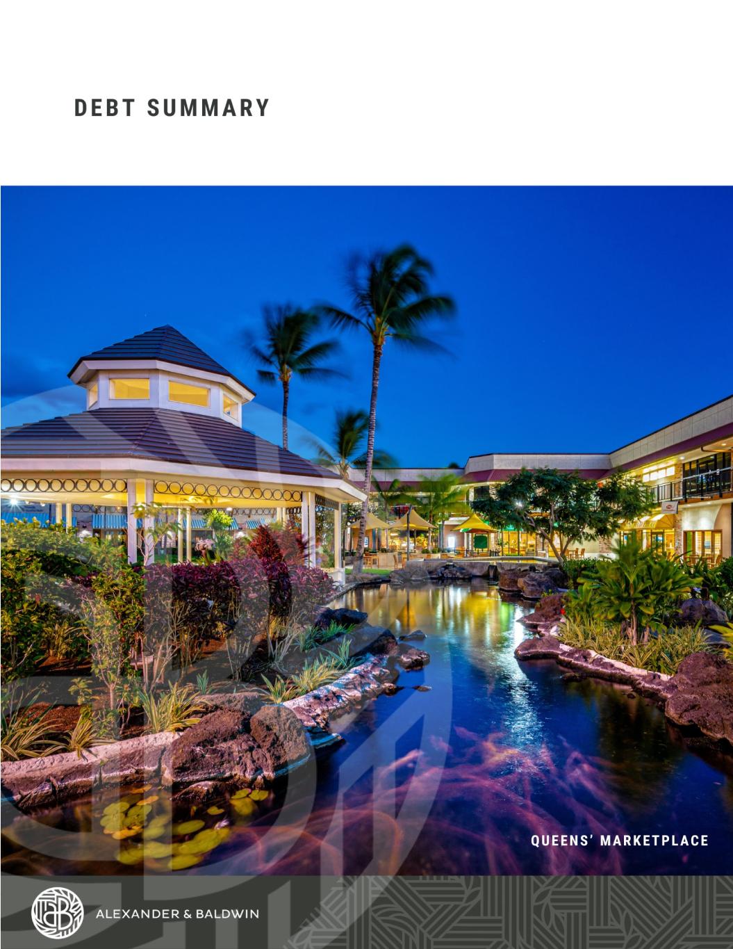 关于亚历山大和鲍德温Alexander & Baldwin, Inc.(NYSE:ALEX)(A & B)是唯一一家专注于夏威夷商业地产的公开交易房地产投资信托基金,也是该州最大的以杂货为基础的邻里购物中心所有者。A & B在夏威夷拥有、经营和管理约390万平方英尺的商业空间,包括22个零售中心、13个工业资产和四个办公物业,以及142.0英亩的地面租赁资产。A & B在其154年的历史中,随着该州的经济发展而发展,并在农业、交通、旅游、建筑、住宅和商业房地产行业的发展中发挥了领导作用。了解有关A & B的更多信息,请访问www.alexanderbaldwin.com。联系人:A & B投资者关系部(808)525-8475investorrelations@abhi.com四
