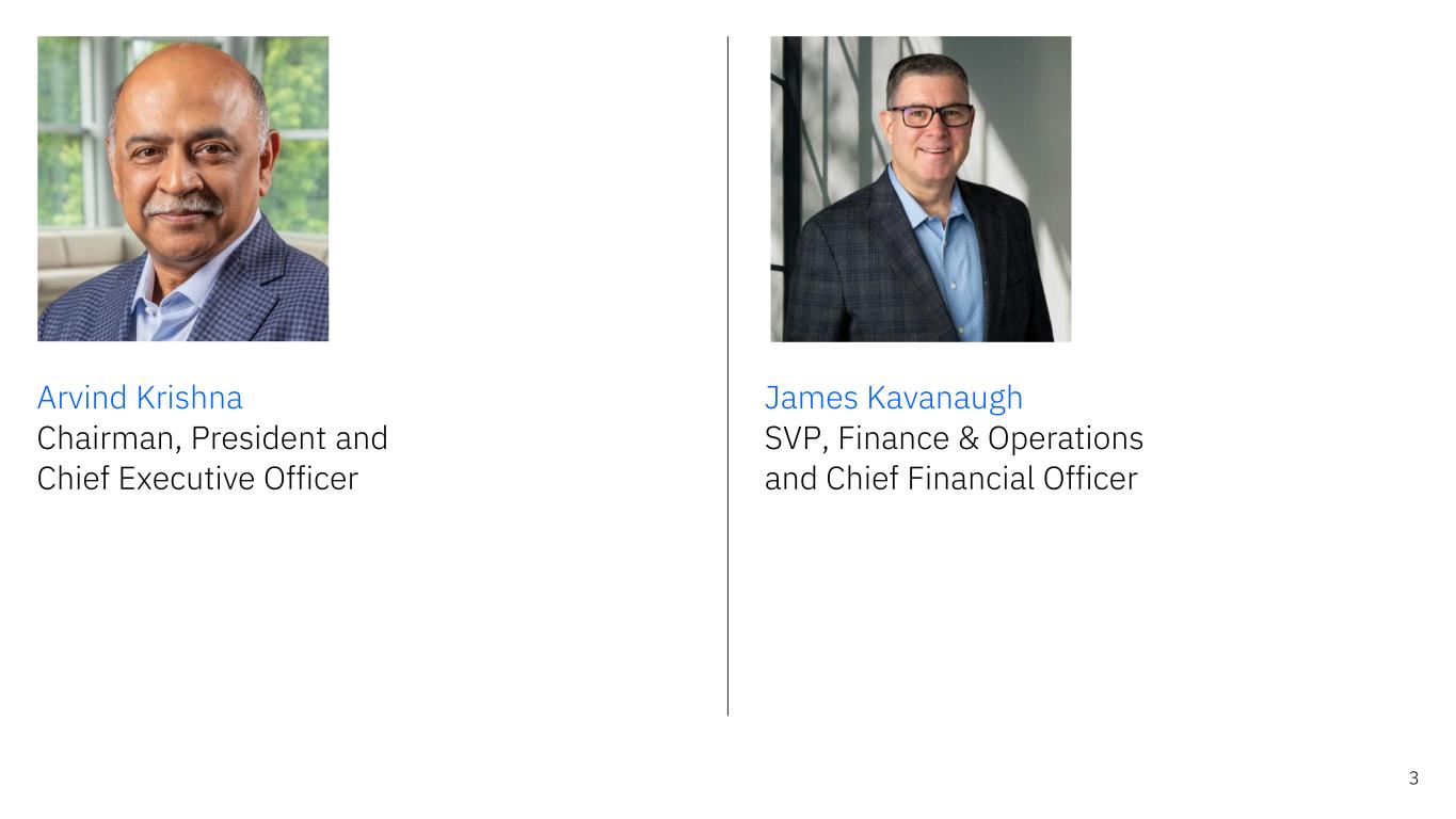 3 Arvind Krishna董事长、总裁兼首席执行官James Kavanaugh财务与运营高级副总裁兼首席财务官