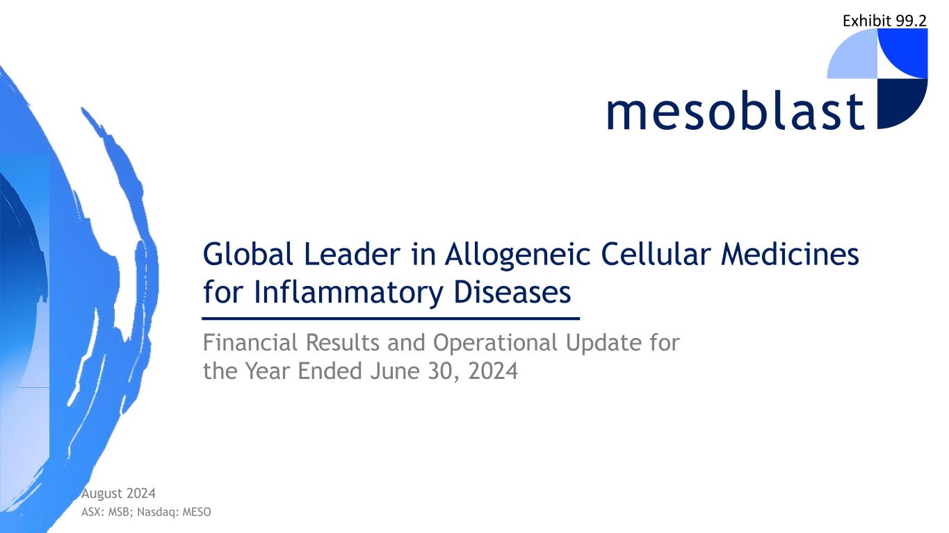 炎症性疾病同种异体细胞药物中母细胞全球领导者2024年8月ASX:MSB;附件 99.2