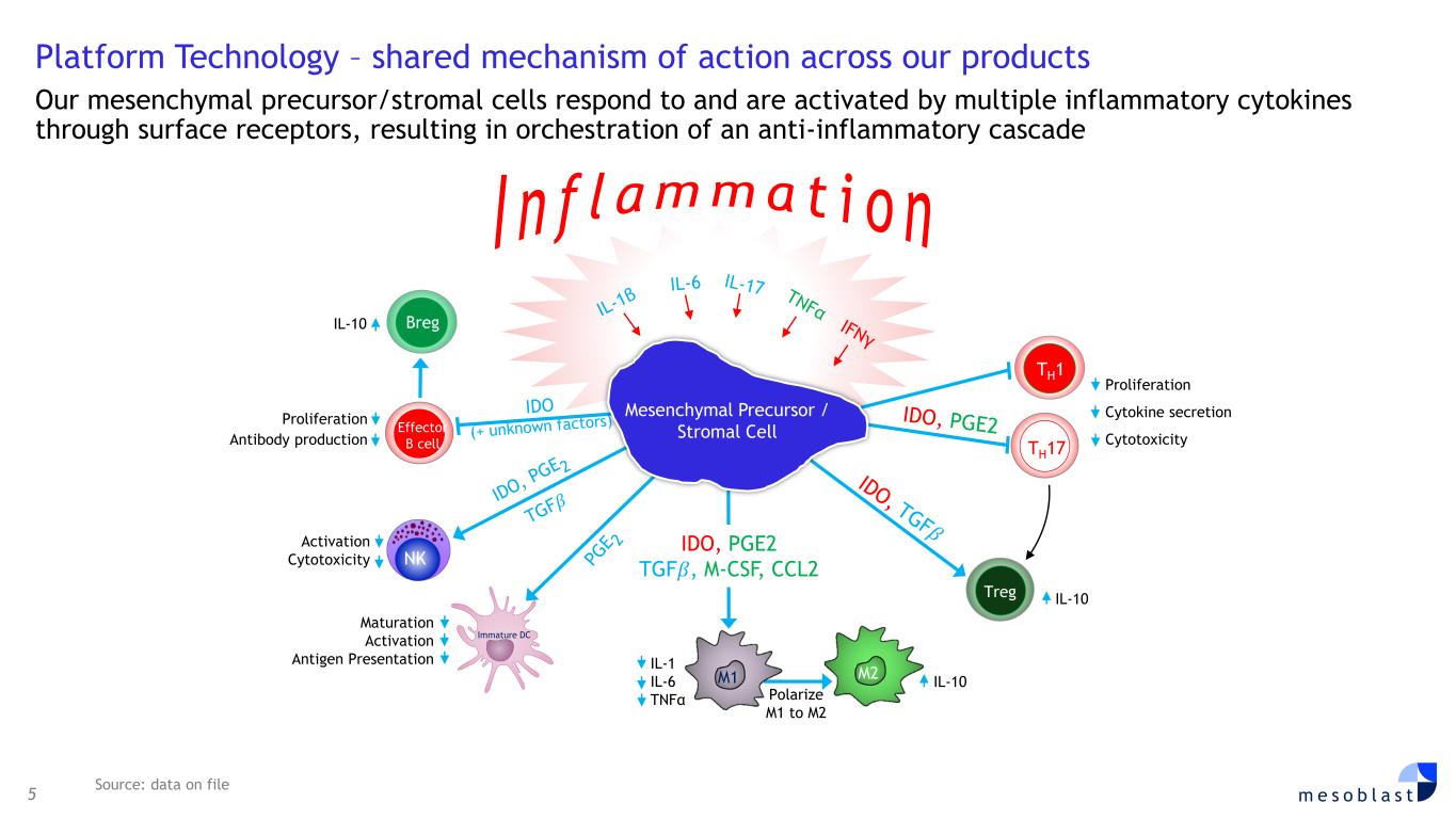 4 m e e s o b l a s t全球市场用于炎症性疾病的同种异体细胞药物的全球领导者丨开发用于治疗严重和危及生命的炎症性疾病的同种异体(现成)细胞药物的世界领导者丨地点在澳大利亚,美国和新加坡丨在ASX(MSB)和纳斯达克(MESO)上市丨基于其remestemcel-L和rexlemestrocel-L基质细胞技术平台开发针对不同适应症的候选产品丨广泛的全球知识产权组合,其保护范围在所有主要市场至少延伸至2041个丨经FDA检查的商业规模制造工艺和设施在三个主要适应症中的3期试验超过1,100项专利和申请两个产品的临床数据足以进行FDA监管审查