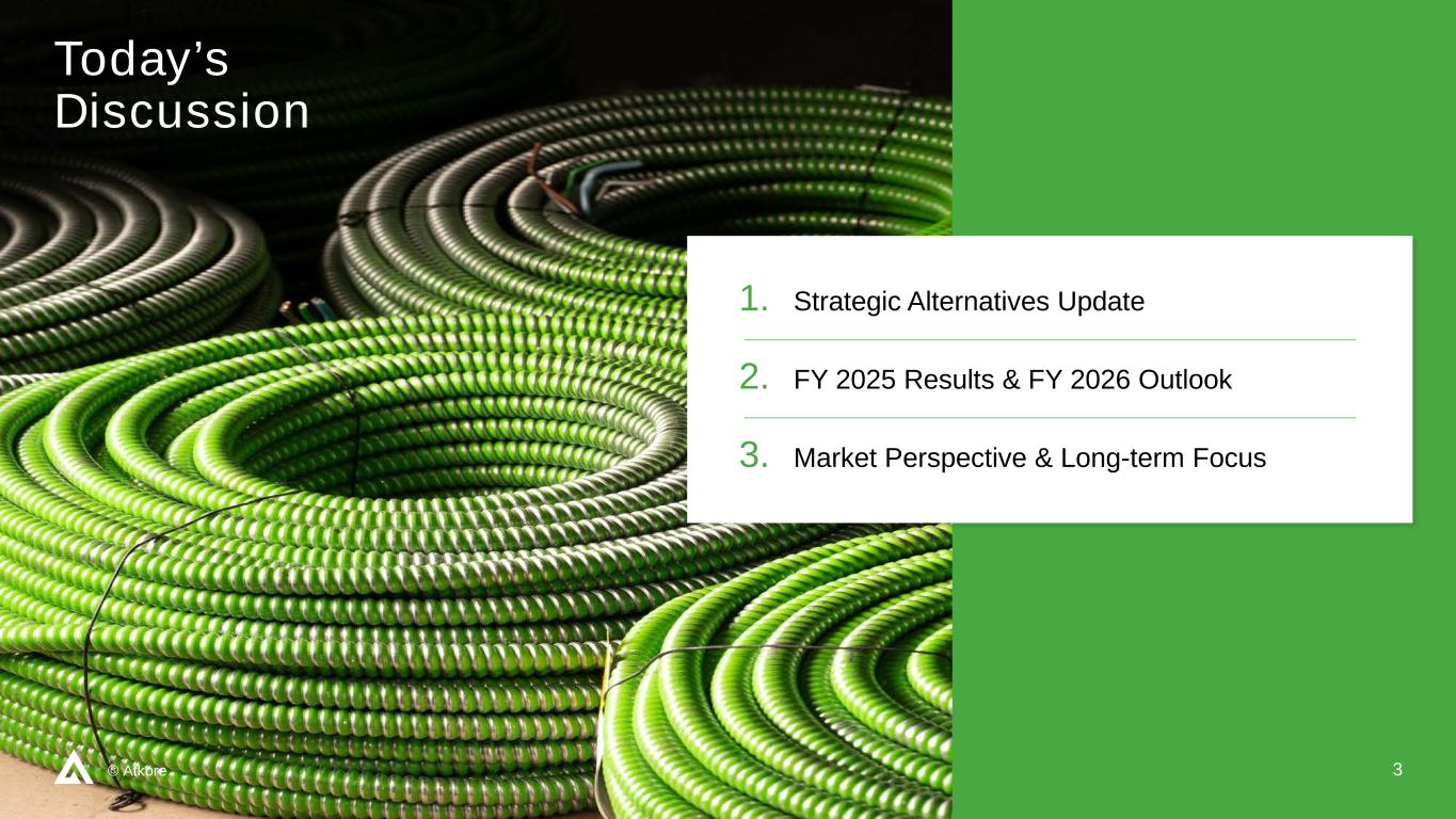 3©Atkore今天讨论1。战略替代方案更新2。2025财年业绩& 2026财年展望3。市场视角&长期关注