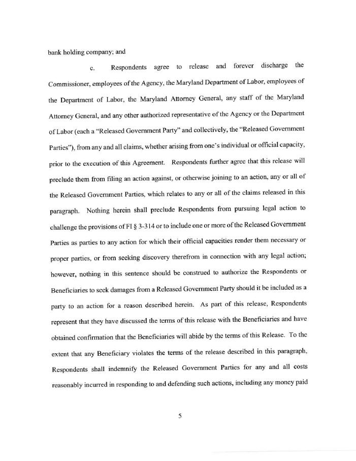 驱动程序向First United的股东发出了另一条误导信息。昨天,驾驶员不准确地将其与马里兰州财务条例专员( "马里兰州专员" )谈判达成的解决协议和同意令定义为免责,或证明其没有违反马里兰州法律。结算驱动程序参考文献是监管者简单地同意不对驱动程序采取执法行动的一种,只要驱动程序,除其他外,同意不违反马里兰州的法律。