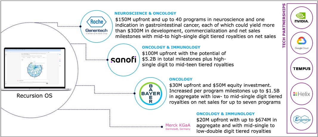| ● | Recursion推出联合后技术支持组合,包含10多个临床和临床前项目、10个先进发现项目和10多个合作项目 |