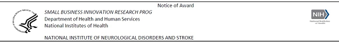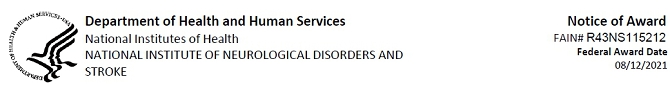 该奖项被授予联邦奖项识别号(FAIN)R43NS115212。受赠方必须在根据本裁决颁发的每个财团/子裁决上记录指定的FAIN。