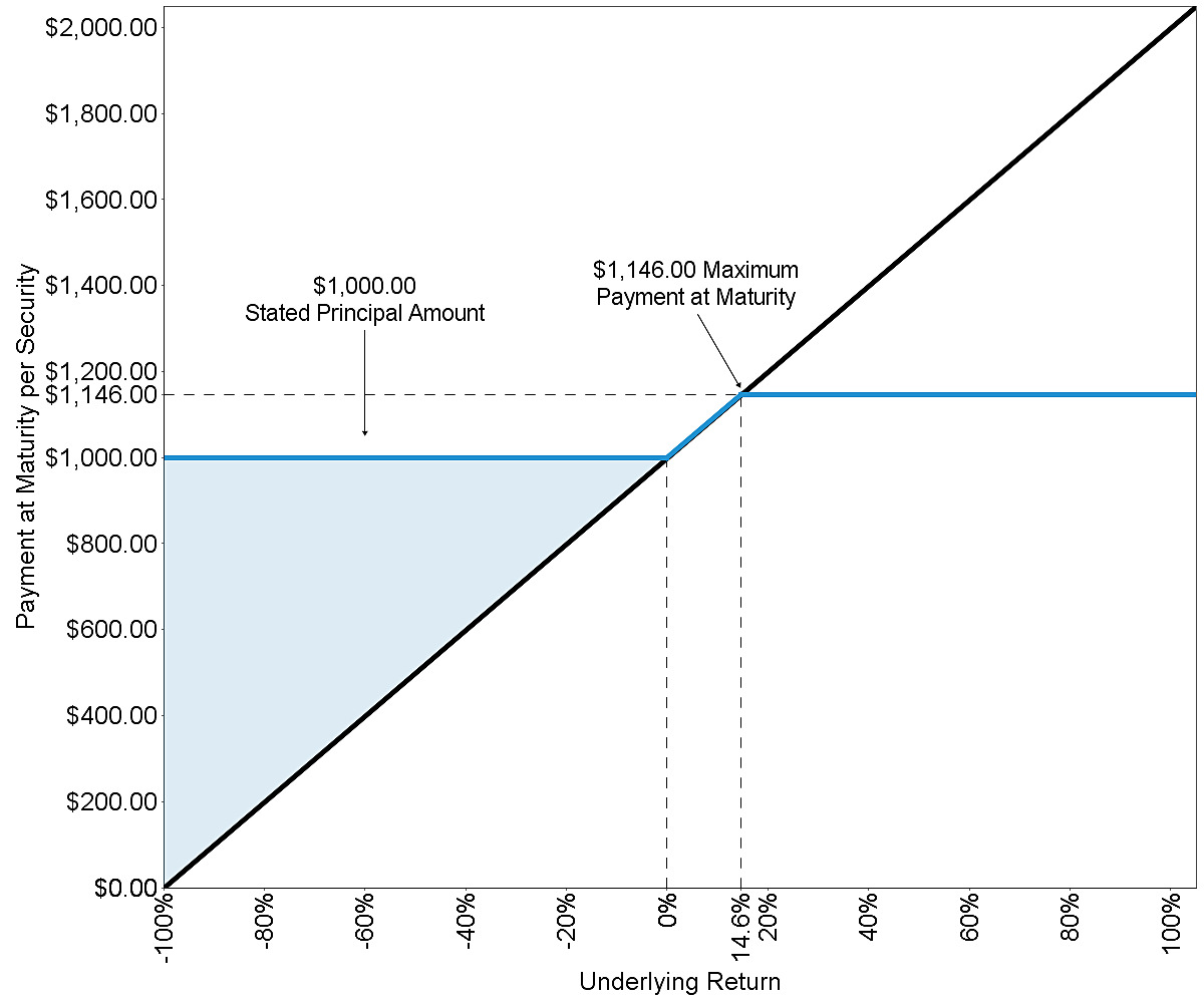 每份证券146.00美元(占申报本金的14.60%)。每份证券的到期付款将不超过规定的本金金额加上到期时的最高收益。
