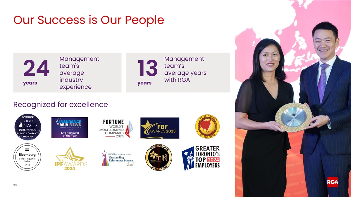 Our success is our people management management team the team of average average years 2413 with RGA years of industry experience recognized for excellence 39
