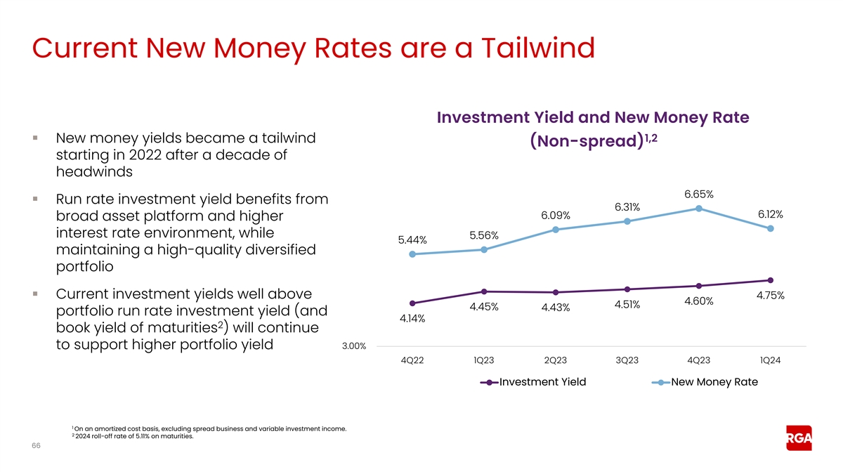 当前新货币利率是顺风投资收益率和新货币利率1,2 ▪新货币收益率在经历了十年逆风后,从2022年开始成为顺风(非利差)6.65% ▪运行率投资收益率受益于6.31% 6.12% 6.09%的广义资产平台和更高的利率环境,而5.56% 5.44%保持高质量的多元化组合▪当前投资收益率远高于4.75% 4.60% 4.51% 4.45% 4.43%组合运行率投资收益率(以及4.14% 2的到期账面收益率)将继续支持更高的组合收益率3.00% 4Q22 1Q23 2Q23 3Q23 4Q23 1Q24投资收益率新货币利率1在摊余成本基础上,不包括利差业务和可变投资收益。22024到期滚动利率为5.11%。66
