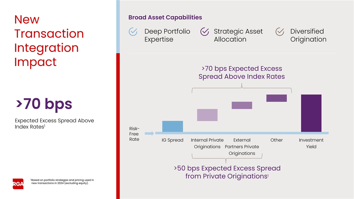 广义资产能力新深组合策略资产多元化交易专长配置发起式整合影响> 70bps预期超额利差高于指数利率> 70bps预期超额利差高于1指数利率无风险利率IG利差内部私人外部其他投资发起伙伴私人收益发起> 50bps预期超额利差来自私人发起1基于2024年新交易中使用的投资组合策略和定价(不含权益)。