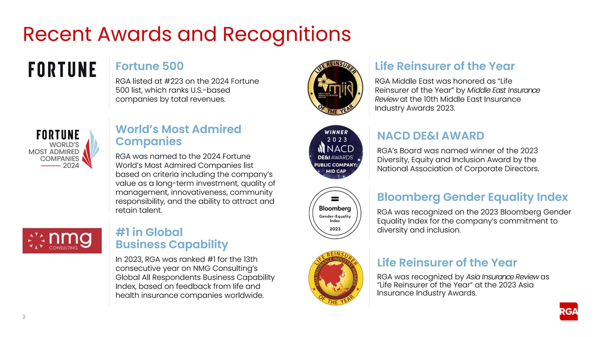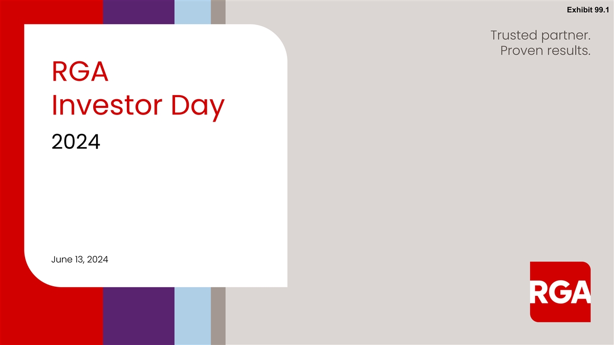 附件 99.1值得信赖的合作伙伴。证明的结果。2024年RGA投资者日2024年6月13日