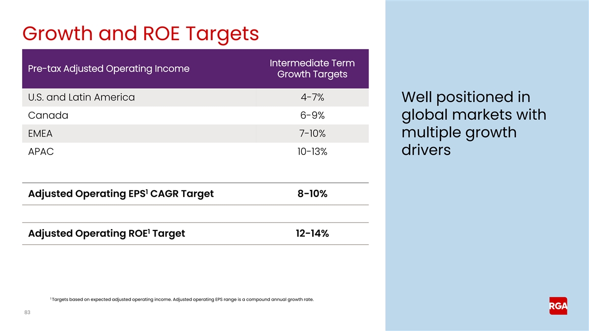 增长和ROE目标中期税前调整后营业收入增长目标美国和拉丁美洲4-7 %处于有利地位加拿大6-9 %全球市场具有EMEA 7-10 %倍数增长亚太地区10-13 %驱动因素1调整后营业EPS CAGR目标8-10 % 1调整后营业ROE目标12-14 % 1目标基于预期调整后营业收入。调整后的经营EPS区间为年复合增长率。83 83