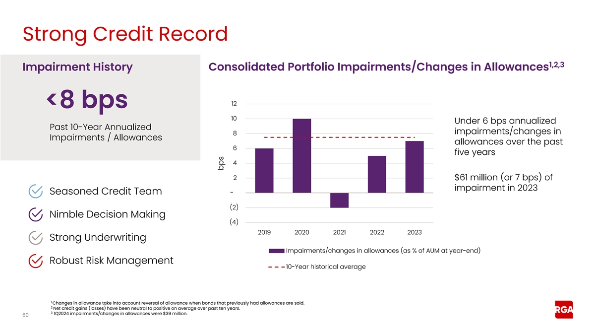 强劲的信用记录1,2,3减值历史合并投资组合减值/备抵变动12 < 8个基点10低于6个基点年化过去10年年化减值/8个减值/备抵变动过去6个五年42个6100万美元(或7个基点)的减值2023经验丰富的信贷团队-(2)灵活的决策(4)20192020202120222023强劲的承销减值/备抵变动(年底占AUM的百分比)稳健的风险管理10年历史平均1备抵变动考虑到出售以前有备抵的债券时备抵的转回。2过去十年,净信贷收益(损失)平均为中性至正。3 2024年第一季度减值/备抵变动为3900万美元。60个基点