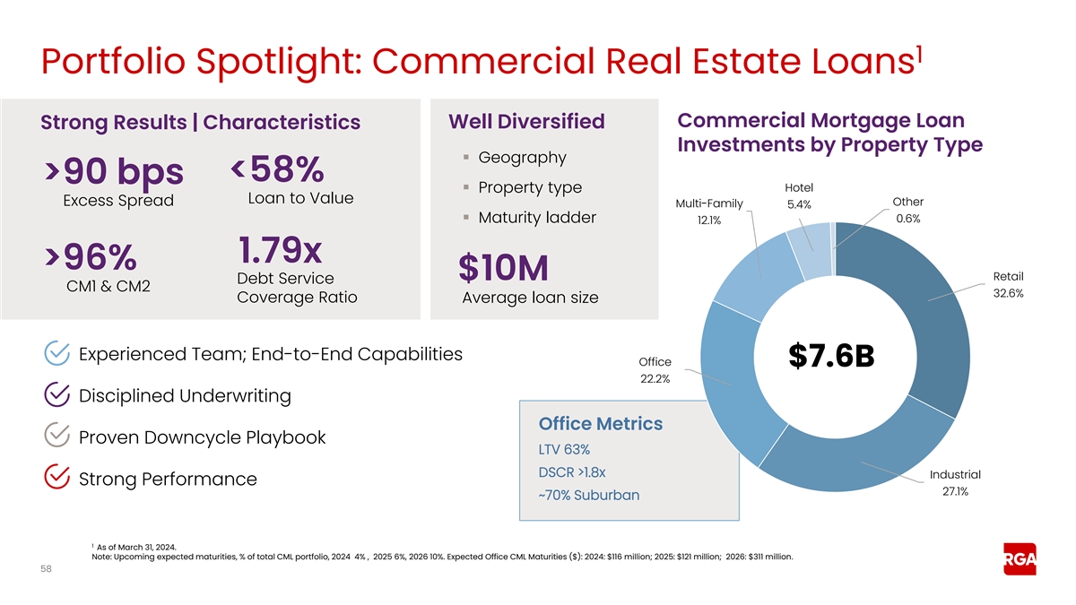 1投资组合聚焦:商业房地产贷款商业抵押贷款强劲业绩|特点良好按物业类型进行多元化投资▪地理< 58% > 90bps酒店▪物业类型贷款对价值超额利差其他多户5.4% ▪期限阶梯0.6% 12.1% 1.79x > 96% 1000万美元零售债务服务CM1和CM2 32.6%覆盖率平均贷款规模经验团队;端到端能力办公室$ 7.6b22.2 %纪律严明的承销办公室指标证明下行周期剧本LTV 63% DSCR > 1.8x工业强劲表现27.1%~70%截至2024年3月31日郊区1。注:即将到期的预期期限,占CML投资组合总额的百分比,20244%,20256%,2026年10%。预计办公CML到期日(美元):2024年:1.16亿美元;2025年:1.21亿美元;2026年:3.11亿美元。58