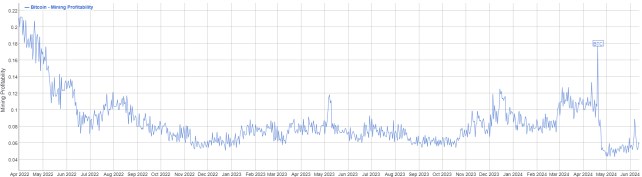 比特币挖矿经济性在2024年1月和2月与上一季度相比保持稳定,保持在每Terahash每秒(“TH/s”)每天约0.07美元至0.10美元的范围内。随着比特币价格在2024年3月增至超过70,000美元,经济状况改善至每天每TH/s 0.08-0.12美元的范围,由于2024年4月20日减半,2024年4月出现了显着飙升。减半后,矿业经济基本上减半,回到每天每TH/s 0.05美元至0.06美元的范围。