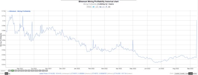 以太坊采矿行业每1兆哈希每秒计算能力的收入为美元/天;