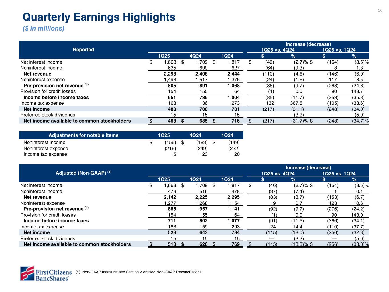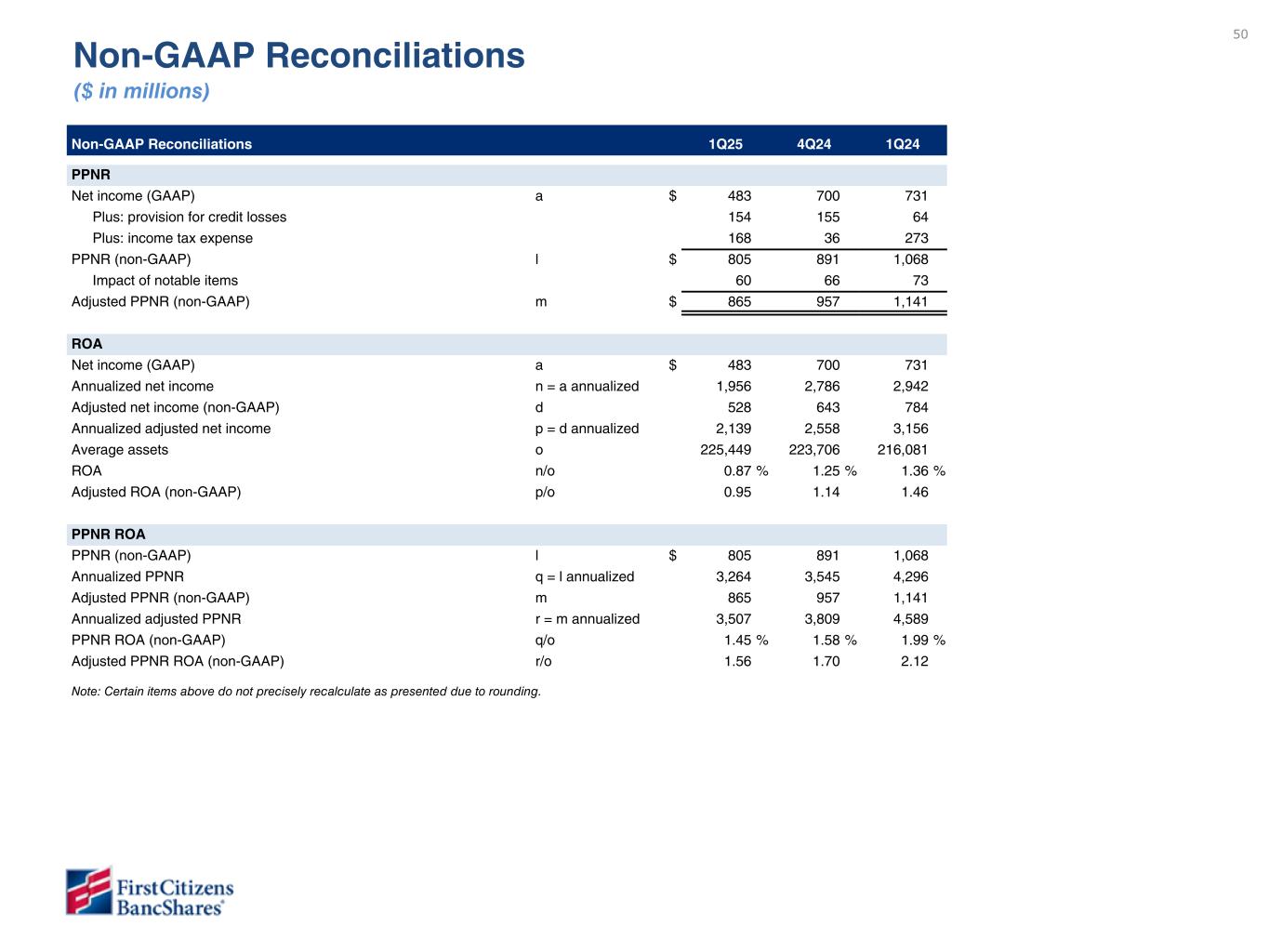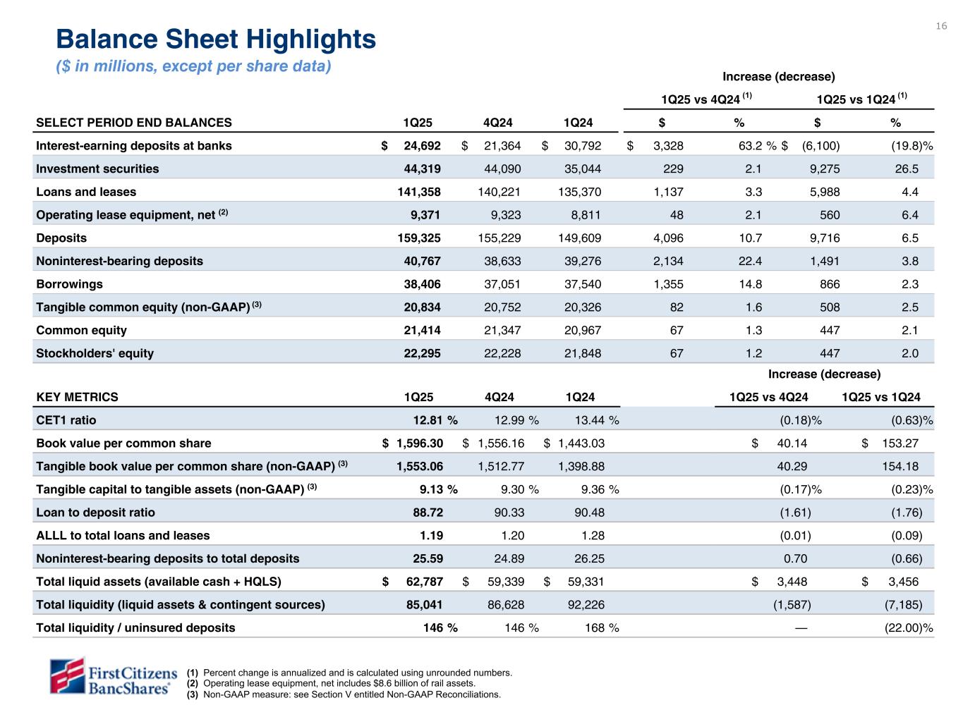 First Citizens BancShares,Inc. 2025年第一季度收益电话会议2025年4月24日