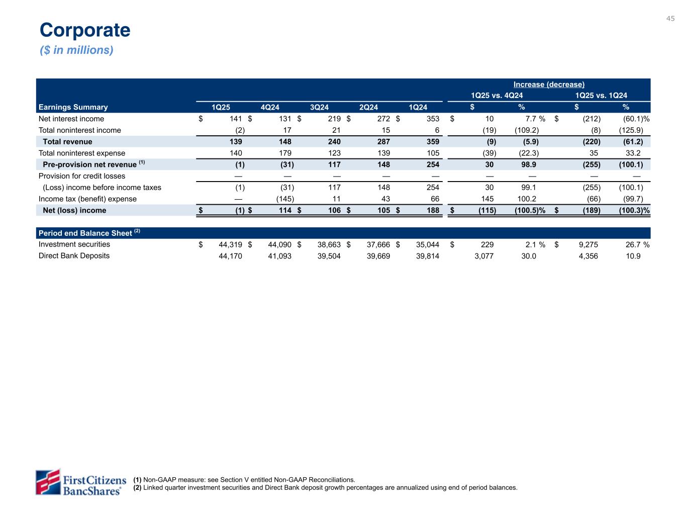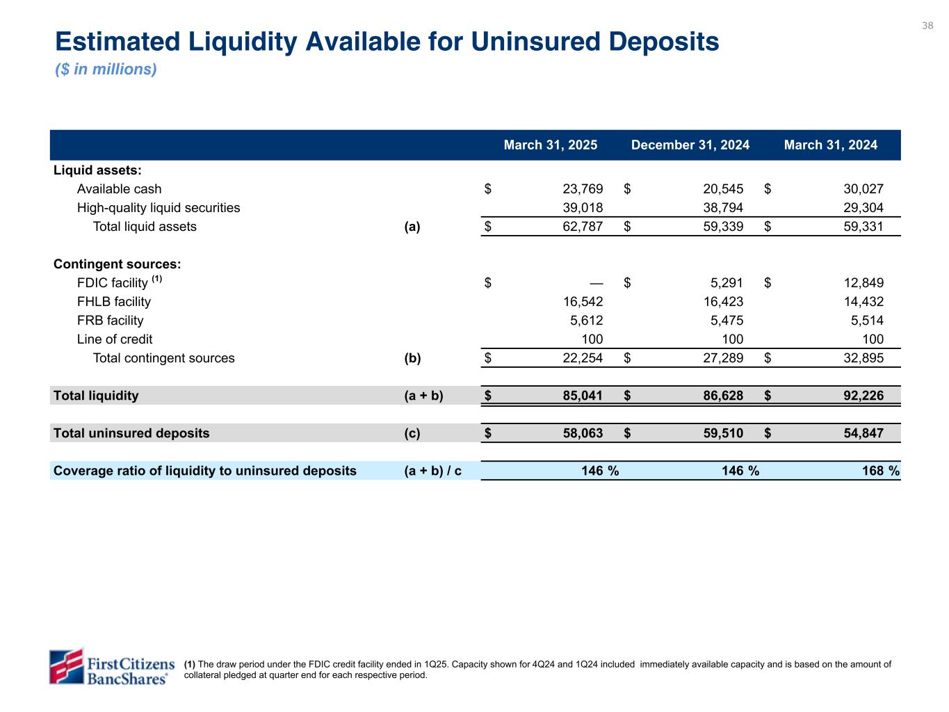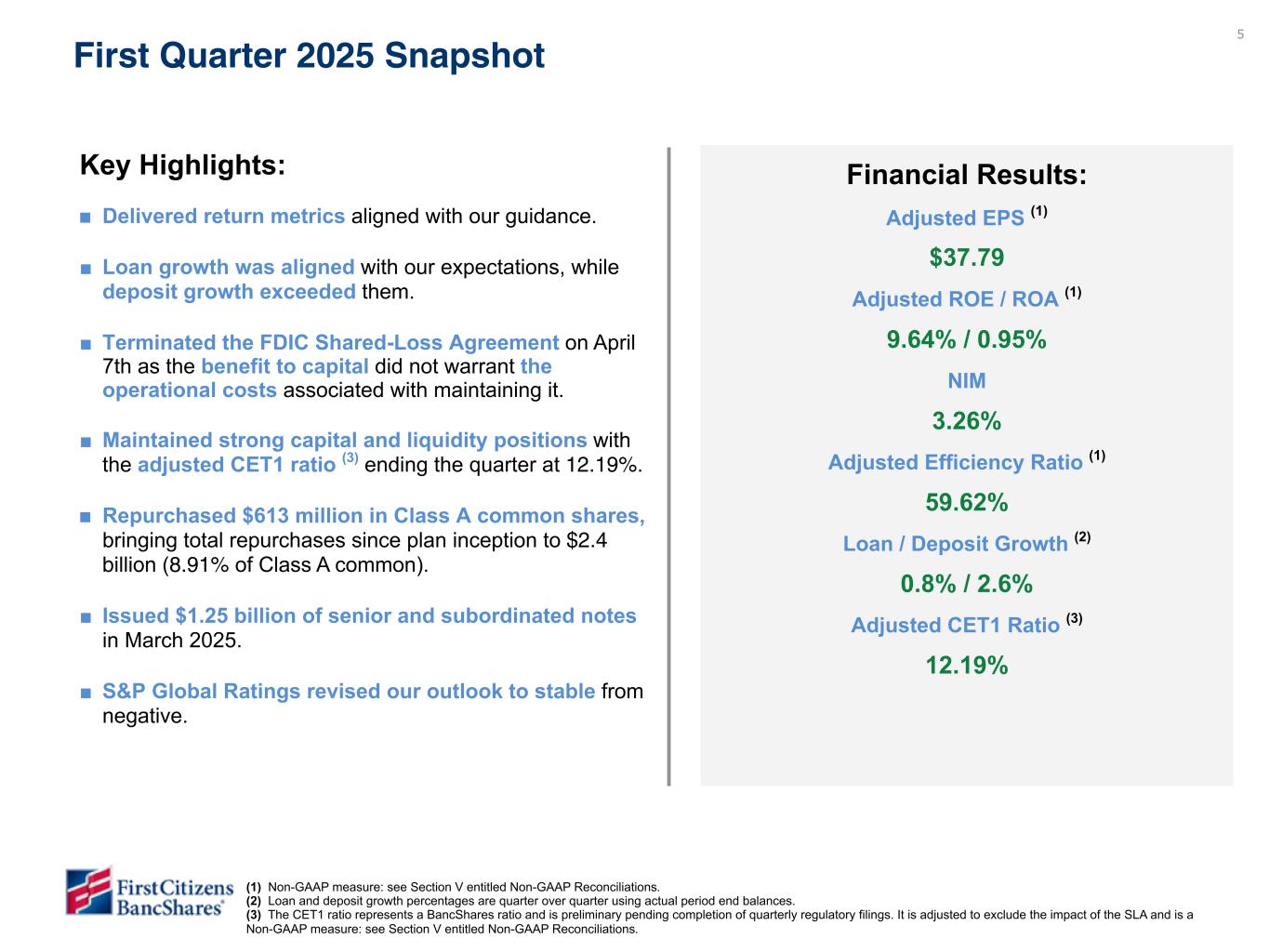 First Citizens BancShares,Inc. 2025年第一季度收益电话会议2025年4月24日