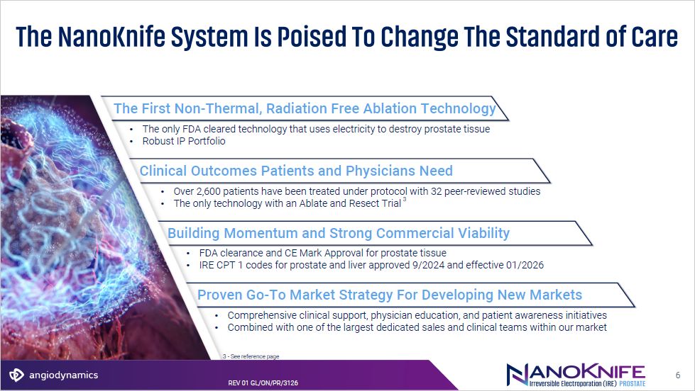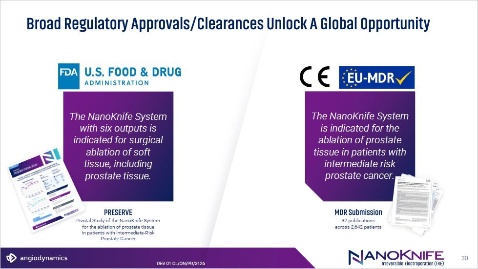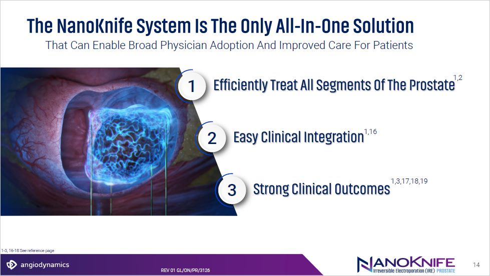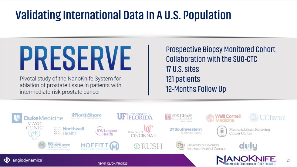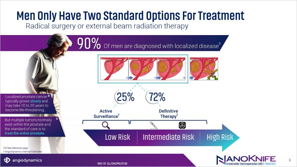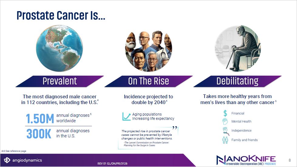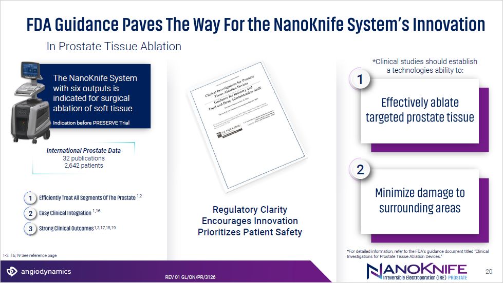 Data on file-NanoKnife system for ablation of prostate tissue(PRESERVE)Scheltema的关键研究,Matthijs J et al.“对不同前列腺节段的局灶不可逆电穿孔后的泌尿生殖功能和生活质量的影响。”诊断和介入放射学(土耳其安卡拉)vol. 24,5(2018):268-275. doi:10.5 152/dir.2018.17 374 Van den Bos,W.,et al.“前列腺癌不可逆电穿孔后的组织病理学结果:消融和切除研究的结果。”Journal of Urology,vol. 196,No. 2,August 2016,pp. 552 – 559,https://doi.org/10.1016/j.juro.2016.02.2977。Lancet Commission on Prostate Cancer:Planning for the激增cases James,Nicholas D et al. The Lancet,Volume 403,Issue 10437,1683 – 1722 Cancer in Men:Prostate Cancer is # 1 for 118 countries globally。美国癌症协会。(2024年9月27日)。https://www.cancer.org/research/acs-research news/prostate-cancer-is-number-1-for-118-countriesworldwide.html#:~:text=AN%20estimated%201.5% 20million%20men,Norway % 2C%20Sweden % 2C%20and % 20Barbados。Global Burden of Disease 2019 Cancer Collaboration,Kocarnik JM,Compton K,et al. 2010-2019年29个癌症群体的癌症发病率、死亡率、生命损失年数、残疾生活年数和残疾调整生命年数:2019年全球疾病负担研究的系统分析[补充]。JAMA Oncol。2022;8(3):420-444。doi:10.1001/jamaoncol.2021.6987临床局限性前列腺癌的治疗|有效健康护理(EHC)计划。(N.D.)。https://effectivehealthcare.ahrq.gov/products/prostate-cancer-therapies-update/clinician Klotz,Laurence。“低中风险前列腺癌的主动监测和焦点治疗。”Translational Andrology and Urology vol. 4,3(2015):342-54. doi:10.3978/j.issn.2223-4683.2015.06.03 L ø vf,Marthe et al.“多灶性原发性前列腺癌表现出高度的基因组异质性。”European urology vol. 75,3(2019):498-505. doi:10.10 16/j.eururo.2018.08.009 Kumar,Ravi et al.“在加拿大使用焦点疗法治疗前列腺癌:我们在哪里,我们是如何来到这里的,我们将去哪里?。”加拿大泌尿外科协会期刊= Journal de l'Association des urologues du Canada,10.5489/cuaj.8888。2024年10月7日,doi:10.5489/cuaj.8888 Timilshina,N等人“积极监测低级别前列腺癌后的长期结果:一项使用标志性方法的基于人群的研究。”The Journal of Urology vol. 209,3(2023):540-548.doi:10.1097/JU.0000000000003097 Donovan JL,Hamdy FC,Lane JA,et al.患者报告的结果在前列腺癌局部治疗12年后。补充表格S1A-D [ NEJM EVID中出现已发布的更正。2023 Jun;2(6):EVIDX2300122.doi:10.1056/EVIDX2300122 ]。NEJM艾维德。2023;2(4):EVIDOA2300018.doi:10.1056/EVIDOA2300018 Zumsteg,Z. S.,Spratt,D. E.,Romesser,P. B.,Pei,X.,Zhang,Z.,Polkinghorn,W.,McBride,S.,Kollmeier,M.,Yamada,Y.,& Zelefsky,M. J.(2015)。接受确定性外照射放疗的前列腺癌患者在剂量递增时代生化复发后的自然史和预后预测因子。欧洲泌尿外科,67(6),1009 – 1016. https://doi.org/10.1016/j.euro.2014.09.028 Bedi N,Reddy D,Ahmed HU。靶向癌症病灶,而不是整个前列腺。翻译Androl Urol。2020年6月;9(3):1518-1525。doi:10.2 1037/tau.2019.09.12。PMID:32676439;PMCID:PMC7354301。Liu,Wennuan et al.“拷贝数分析表明致死性转移性前列腺癌的单克隆起源。”Nature Medicine vol. 15,5(2009):559-65. doi:10.1038/nm.1944 35 REV 01 GL/on/PR/3126