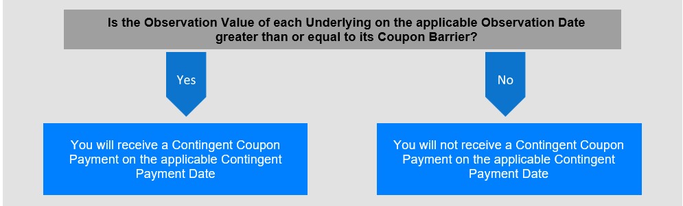 如果,在任何月度观察日,观察值为每个基础大于或等于其票息障碍,我们将在适用的或有支付日(包括到期日)支付每1,000.00美元票据本金9.75美元的或有票息支付(相当于每月0.975%或每年11.70%的利率)。