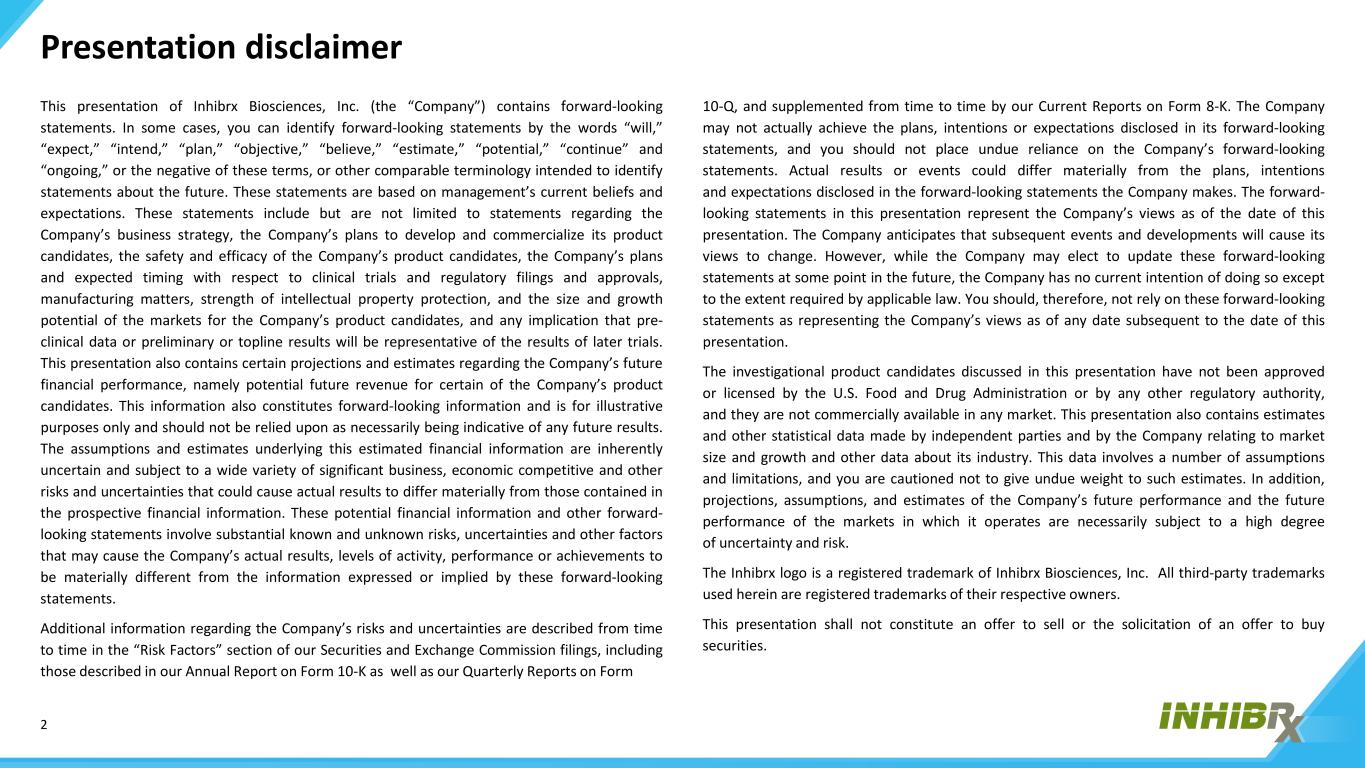 2演示文稿免责声明Inhibrx Biosciences,Inc.(“公司”)的此演示文稿包含前瞻性陈述。在某些情况下,您可以通过“将”、“预期”、“打算”、“计划”、“目标”、“相信”、“估计”、“潜在”、“继续”和“进行中”等词语来识别前瞻性陈述,或者这些术语的否定,或者旨在识别关于未来的陈述的其他类似术语。这些陈述是基于管理层目前的信念和期望。这些陈述包括但不限于有关公司业务战略、公司开发候选产品并将其商业化的计划、公司候选产品的安全性和有效性、公司在临床试验和监管备案和批准方面的计划和预期时间、制造事项、知识产权保护的强度、公司候选产品的市场规模和增长潜力的陈述,以及任何暗示临床前数据或初步或一线结果将代表后期试验的结果。本演示文稿还包含有关公司未来财务业绩的某些预测和估计,即公司某些候选产品的潜在未来收入。这些信息也构成前瞻性信息,仅用于说明目的,不应被视为必然指示任何未来结果。这一估计财务信息所依据的假设和估计具有内在的不确定性,并受到各种重大商业、经济竞争和其他风险和不确定性的影响,这些风险和不确定性可能导致实际结果与预期财务信息中包含的结果存在重大差异。这些潜在的财务信息和其他前瞻性陈述涉及大量已知和未知的风险、不确定性和其他因素,可能导致公司的实际结果、活动水平、业绩或成就与这些前瞻性陈述所表达或暗示的信息存在重大差异。有关公司风险和不确定性的其他信息不时在我们的证券交易委员会文件的“风险因素”部分中描述,包括我们的10-K表格年度报告以及10-Q表格季度报告中描述的信息,并不时由我们当前的8-K表格报告补充。公司可能无法实际实现其前瞻性陈述中披露的计划、意图或预期,您不应过分依赖公司的前瞻性陈述。实际结果或事件可能与公司做出的前瞻性陈述中披露的计划、意图和预期存在重大差异。本演示文稿中的前瞻性陈述代表公司截至本演示文稿发布之日的观点。该公司预计,后续事件和发展将导致其观点发生变化。然而,尽管公司可能会选择在未来某个时候更新这些前瞻性陈述,但公司目前无意这样做,除非适用法律要求。因此,您不应依赖这些前瞻性陈述来代表公司在本演示文稿日期之后的任何日期的观点。本演示文稿中讨论的研究候选产品未获得美国食品和药物管理局或任何其他监管机构的批准或许可,并且它们不能在任何市场上进行商业销售。本演示文稿还包含独立方和公司就市场规模和增长做出的估计和其他统计数据以及有关其行业的其他数据。这些数据涉及许多假设和限制,请注意不要对这些估计给予不应有的权重。此外,对公司未来业绩和经营所在市场未来业绩的预测、假设、估计必然具有高度的不确定性和风险性。Inhibrx徽标是Inhibrx Biosciences,Inc.的注册商标。此处使用的所有第三方商标均为其各自所有者的注册商标。本演示不构成出售要约或购买证券的要约邀请。